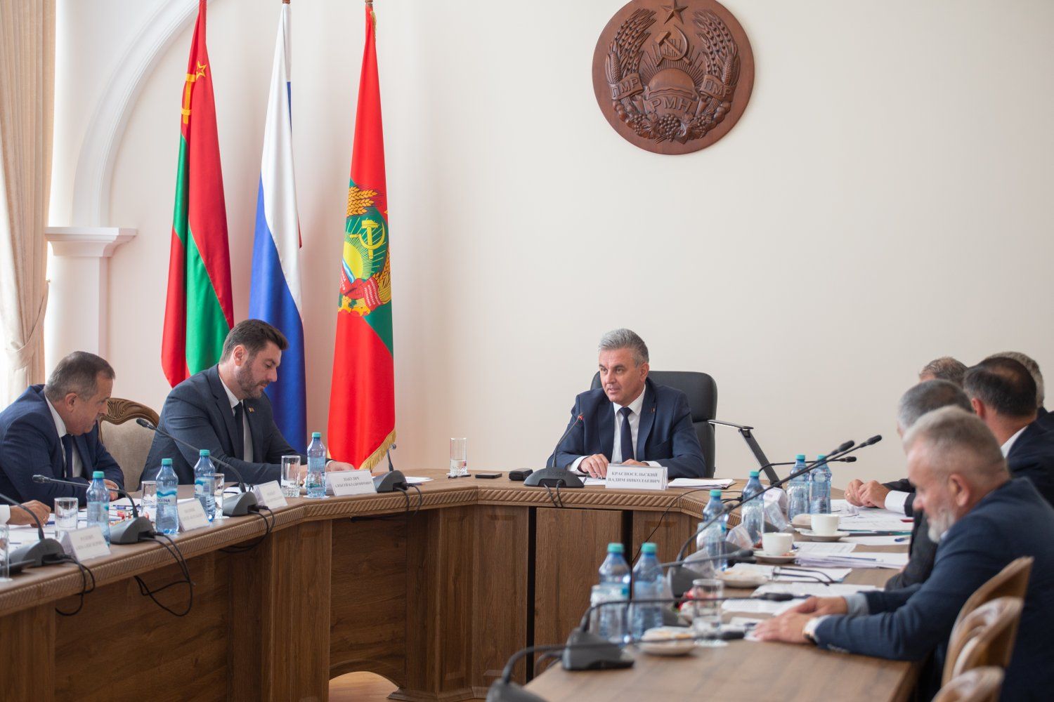 19 Sep., 2024, 16:59An extended meeting was organized by decision of the President on issues requiring joint discussion by representatives of various state legislative and executive authorities in order to develop optimal solutions. Members of the presidiums of the Supreme Council and the Government of the PMR, heads of state administrations of cities and districts of the republic were invited to the discussion.