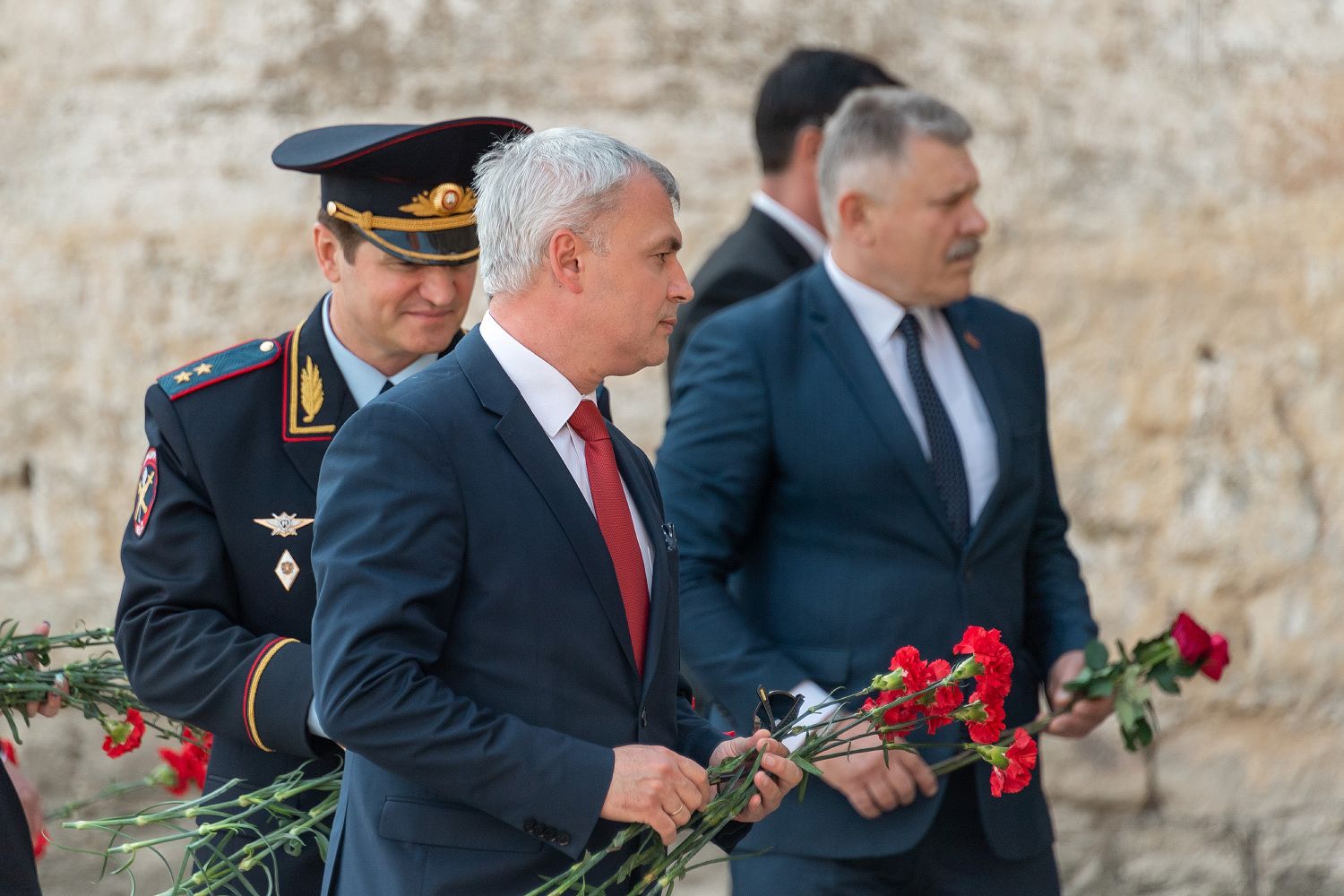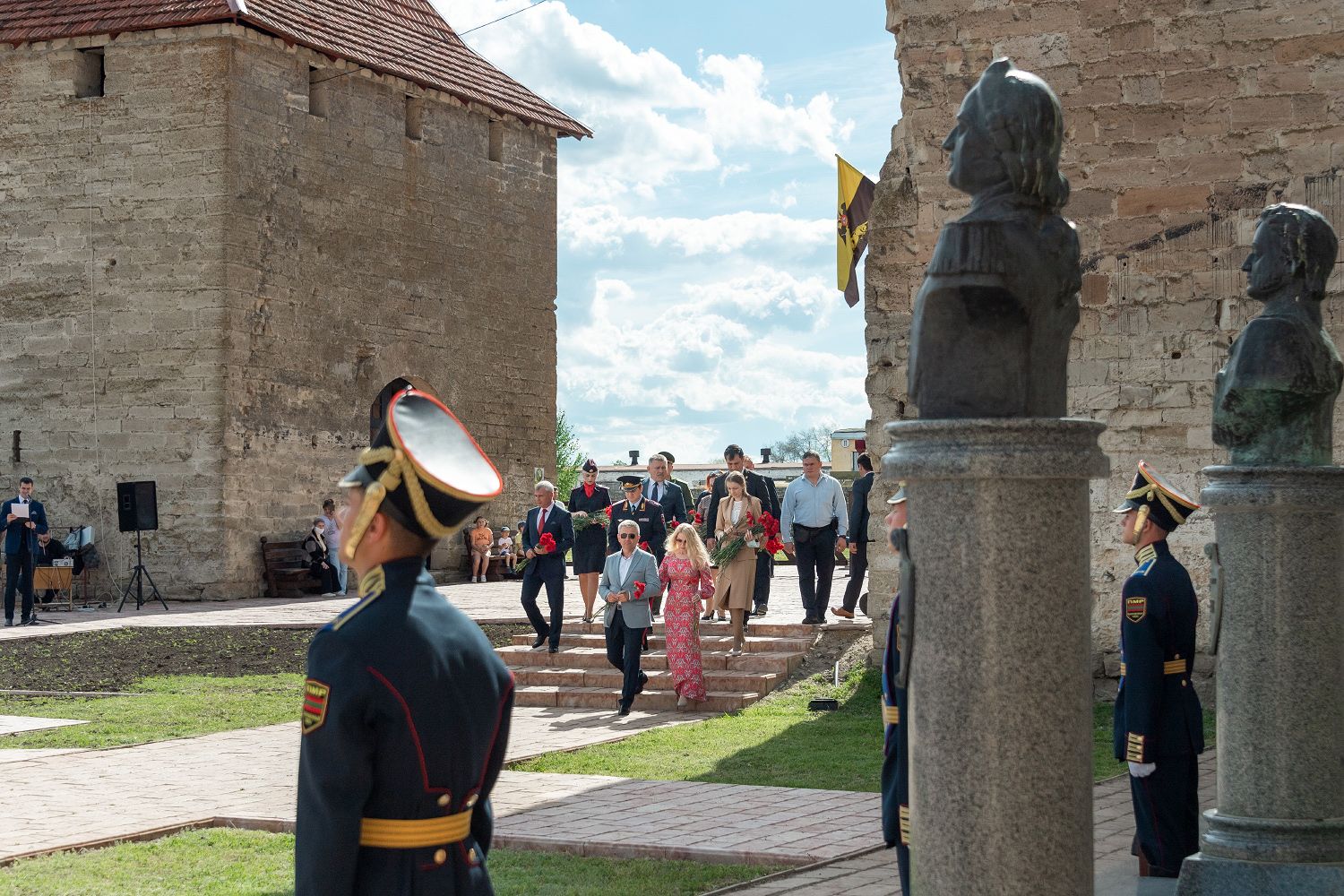Flowers were laid at the foot of the monument to the Faithful Saint Prince Alexander Nevsky and at the portrait sculptures of the great commanders installed on the Pantheon of Russian Glory near the citadel of the fortress.