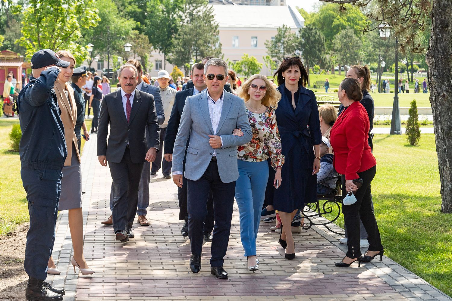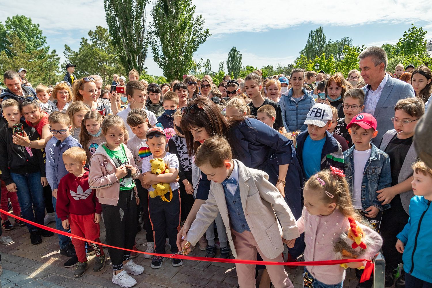 05 Jun., 2021, 11:26Miracle City is one of the most important and most long-awaited locations in the Catherine Park. The opening of the amusement park was planned to coincide with the Children's Day. The weather intervened. Considering that the main heroes of the celebration are children, they did not risk their health and postponed the festive event. The entertainment and gaming sector was inaugurated today. The PMR President Vadim Krasnoselsky with his wife took part in the ceremony. The President cut the symbolic red ribbon in a large company of young residents of Tiraspol and guests of the city.