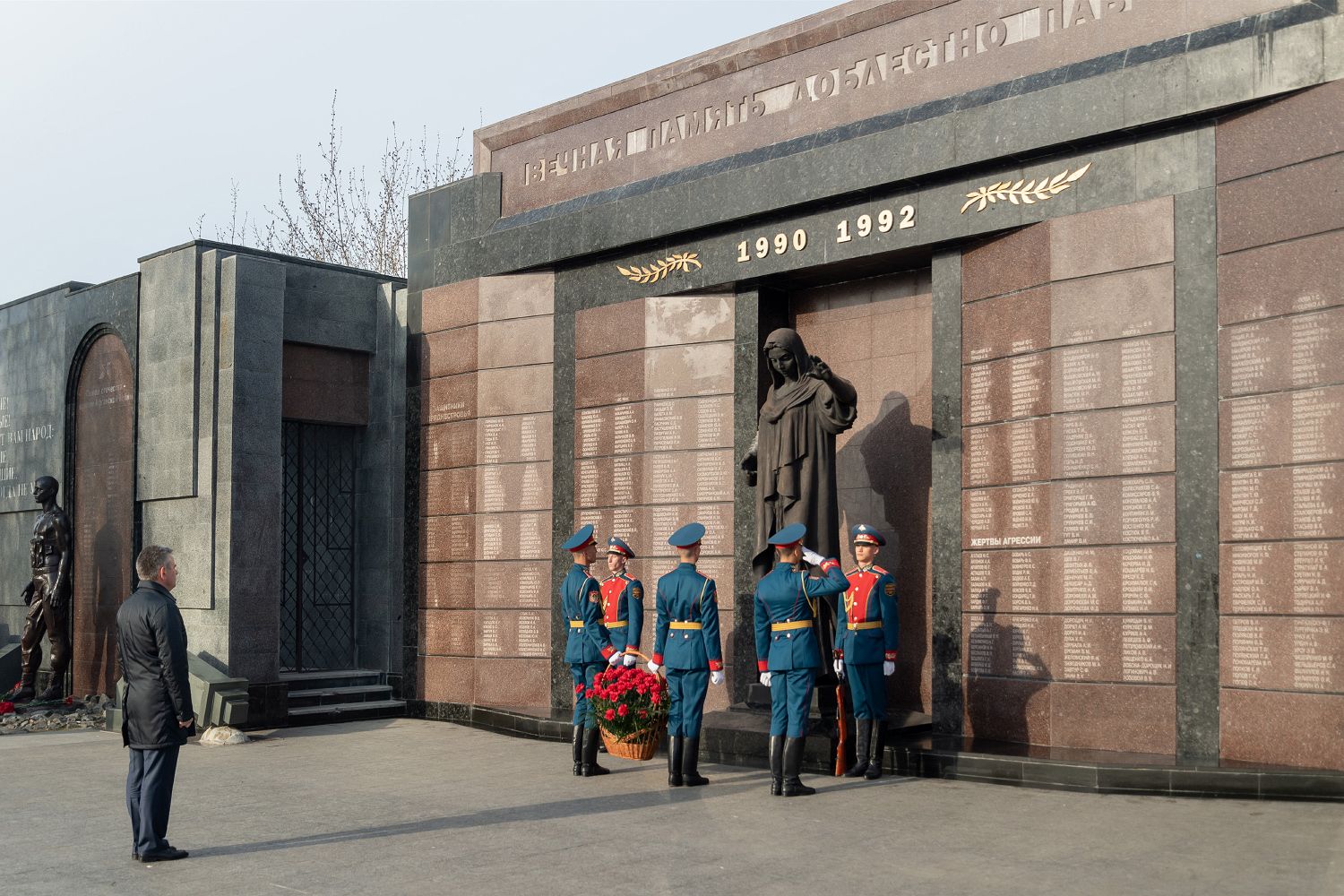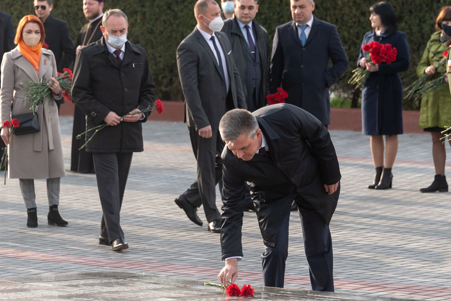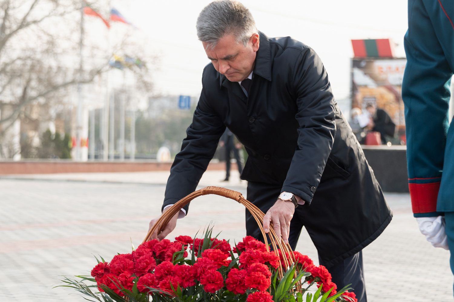 The President laid flowers at the Eternal Flame and the graves of defenders of the Fatherland on the occasion of the Day of Liberation of Pridnestrovian cities from Nazi invaders