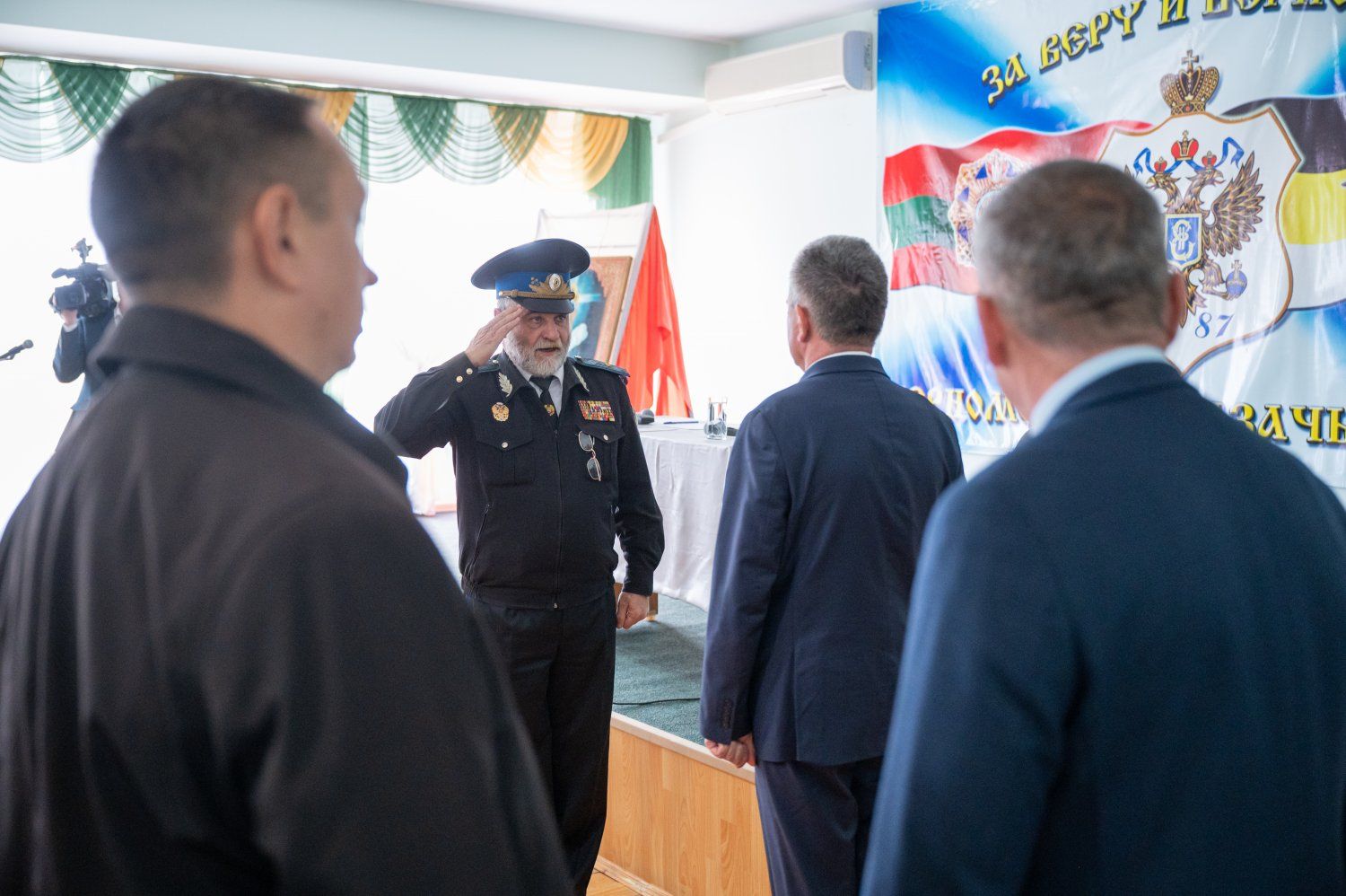 The Cossacks in the dialogue part of the meeting addressed their concerns to the President. Answering them, the President outlined the picture of today. He spoke about the impact on Pridnestrovie of the events taking place in neighboring states and in the world as a whole. The republic fulfills all social obligations despite the difficulties, takes measures to develop the economy, upgrade infrastructure, and does not abandon plans to further increase salaries for state employees, Vadim Krasnoselsky emphasized. Speaking about new challenges, the President spoke about the prerequisites for the current situation in the gas sector, the current state of affairs, the measures taken for prompt response, and prospects. They discussed the topic of upcoming optimization in the medicine. They talked about the Armed Forces of the PMR, positive changes in the Pridnestrovian army, improving the conditions of service and the quality of military training of conscript soldiers. Among the topics raised at the meeting are the Cossack squads and the improvement of the regulatory framework governing the functioning of the Cossack patrols that assist law enforcement agencies. Questions related to the mechanism of payment for housing and communal services by Cossack villages, their material and technical equipment and staffing were raised. They discussed the prospects for creating a center of Cossack culture in Pridnestrovie. Several accommodation options are offered. The President noted that he would study the initiatives and, having the necessary amount of information, would make a decision. The Cossacks also proposed to perpetuate the memory of Vladimir Ryabinsky, who passed away in September of this year, the military ataman of the Black Sea Cossack army in the period from 1994 to 2012. The President supported the initiators: a commemorative plate will be installed on the house where the Cossack general lived.