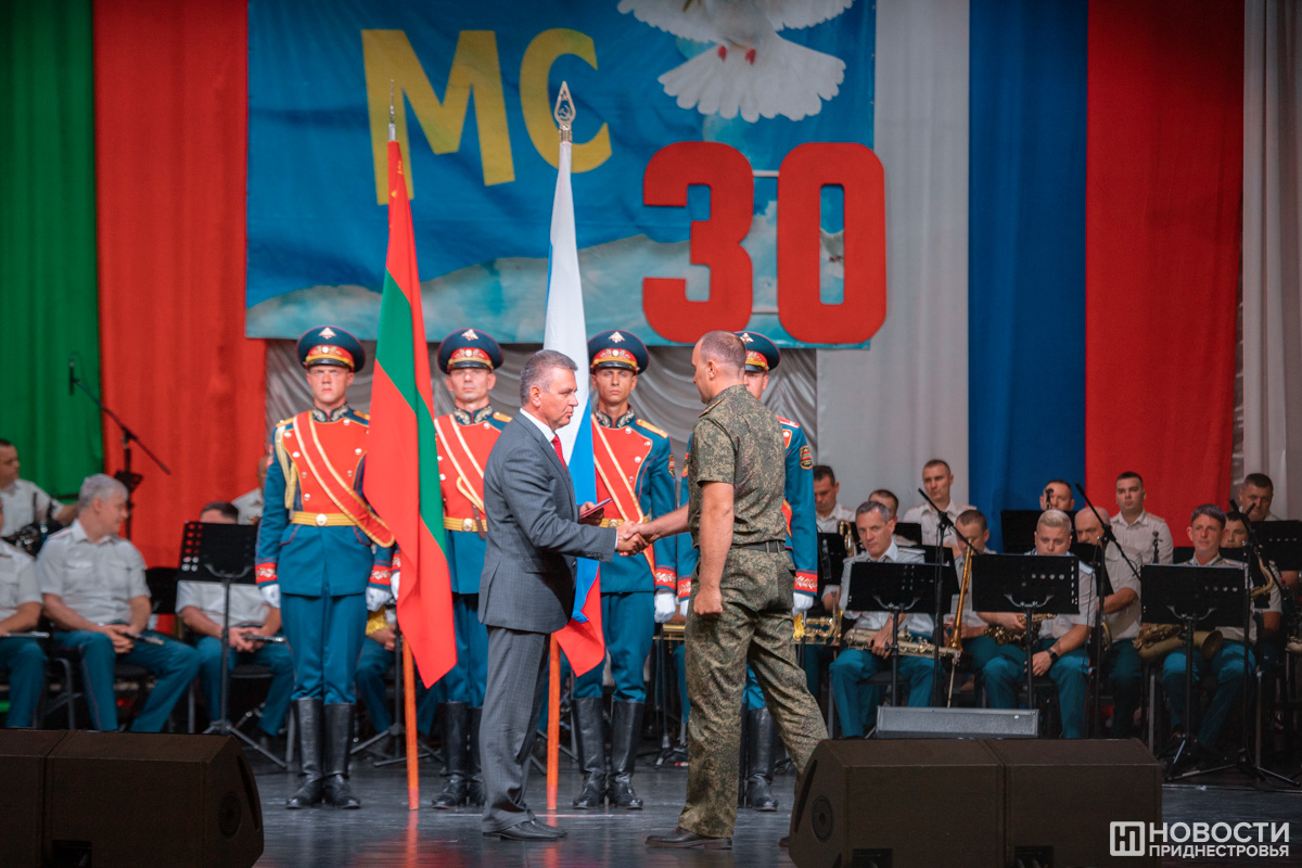 The PMR President Vadim Krasnoselsky presented state awards and "30 years of the peacekeeping operation" commemorative medals in the course of the solemn meeting.