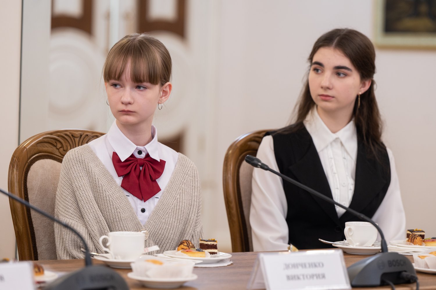 The meeting participants discussed the importance of preserving history. Vadim Krasnoselsky told what is being done in this direction in Pridnestrovie. He invited the youth to take part in thematic events planned for this year. The participants of the meeting exchanged memorable gifts.