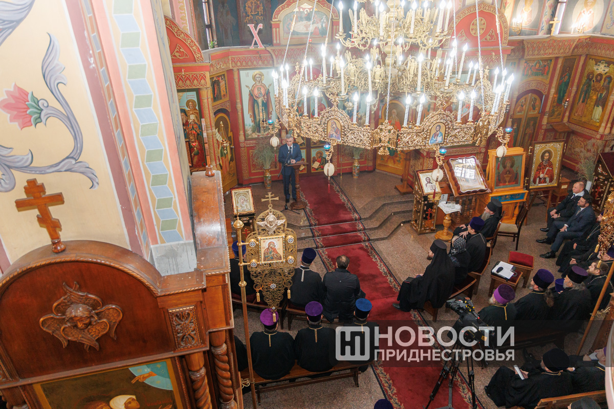 24 Dec., 2024, 14:55The Diocesan Assembly was held in the Nativity of Christ Cathedral in the capital. The purpose of the event was to sum up the results of the year. The participants were clergy from all over the republic, headed by Archbishop of Tiraspol and Dubossary Sawa. The PMR President Vadim Krasnoselsky was among the invited guests.
