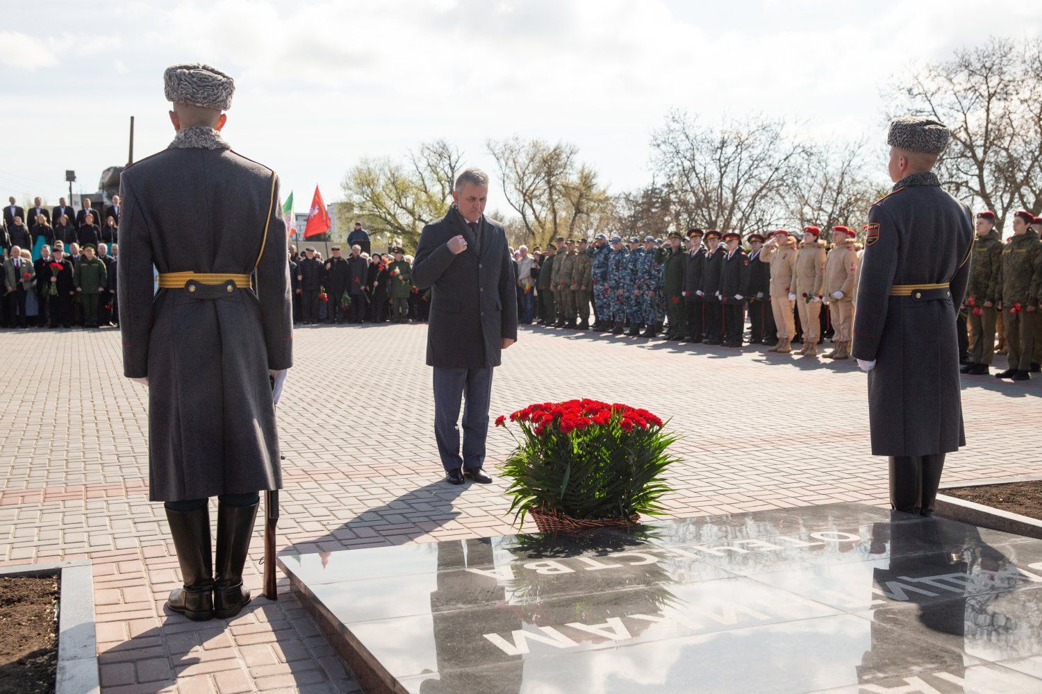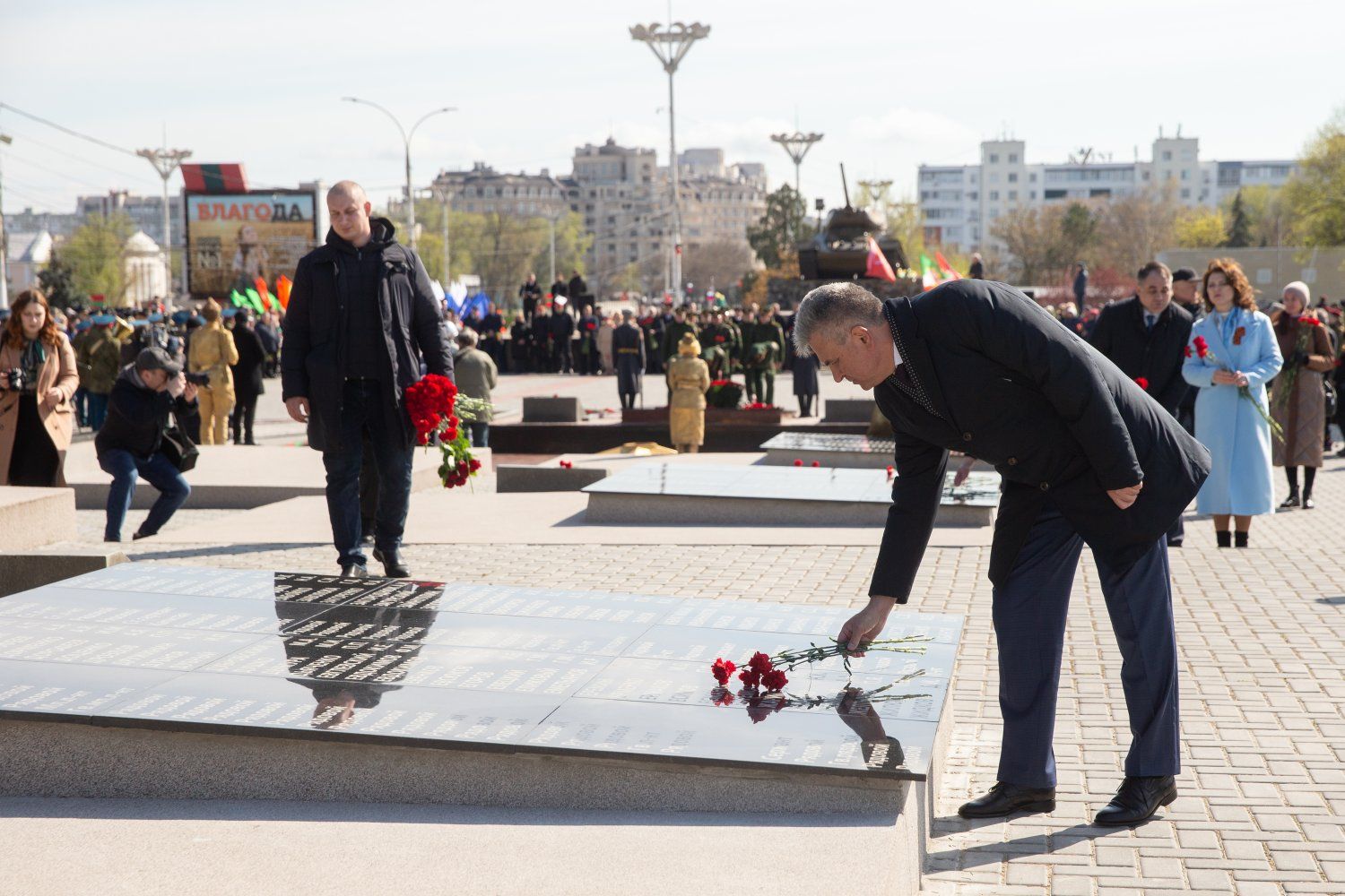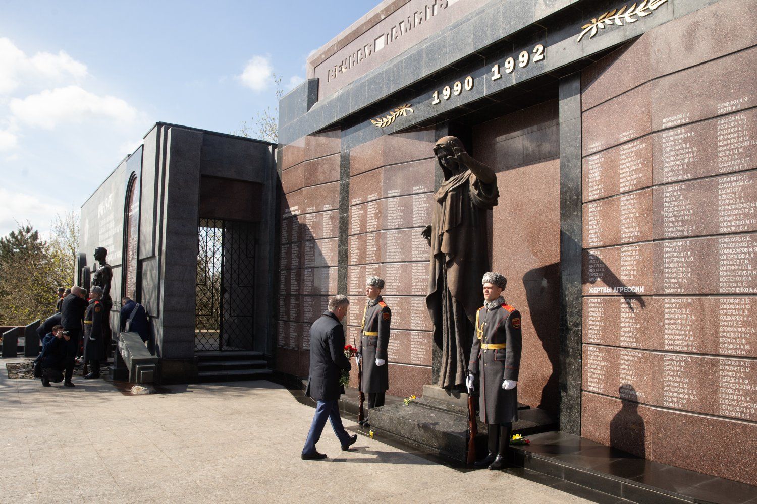 "The war for the city of Tiraspol, for the people of Tiraspol, as for all Soviet citizens, began on June 22, 1941. Volunteer fighter battalions were formed in Tiraspol from the first days, which had a great influence on the events of July-August 1941 in terms of counteracting the German-Romanian invaders. It was the people of Tiraspol who held back 10 divisions of the advancing enemy and gave the defenders of Odessa time to prepare for its defense. Many of those who defended the city of Tiraspol in June, July, and August 1941, and then went on to defend their homeland together with our advancing troops. About 1400 of them died on the fronts of the Great Patriotic War. They are buried somewhere on the territory of the former Soviet Union and on the territory of Europe. Many of them are buried in unknown graves – there is no exact burial place of the remains. A new page opens in the history of the city of Tiraspol today. The defenders of our Motherland, our fellow countrymen are not forgotten. The name of everyone who did not return to their hometown, defending our Soviet Motherland, is carved in granite. This is important. This is memory. This is our duty.