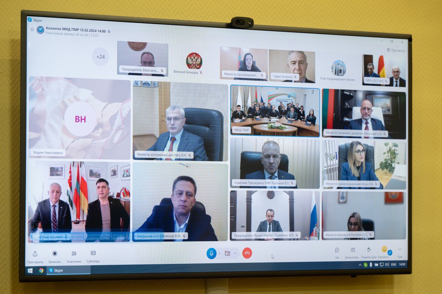 15 Feb, 2024, 17:41The foreign-policy establishment held an extended meeting of the Collegium of the PMR Foreign Ministry. The work was organized via video conference. The President took part. The event was of reporting nature. 2023 was the period under discussion. The results of the activities were summed up by the Minister of Foreign Affairs.