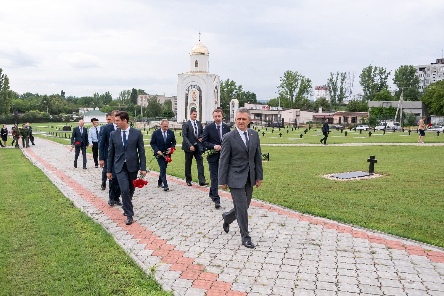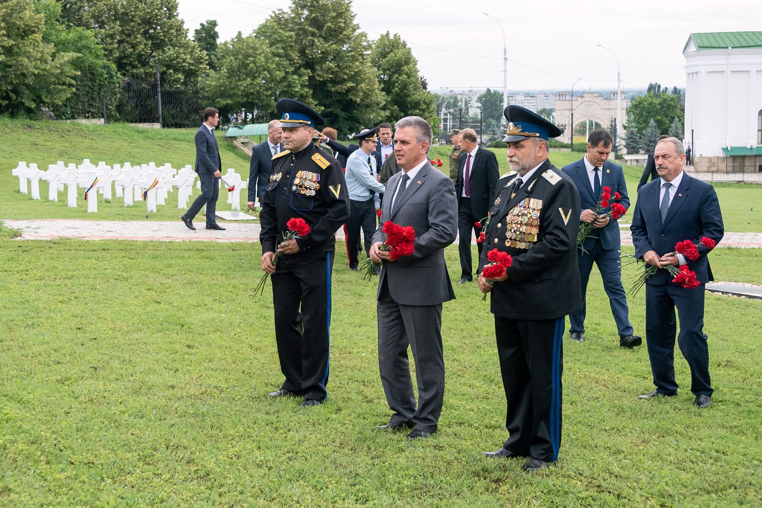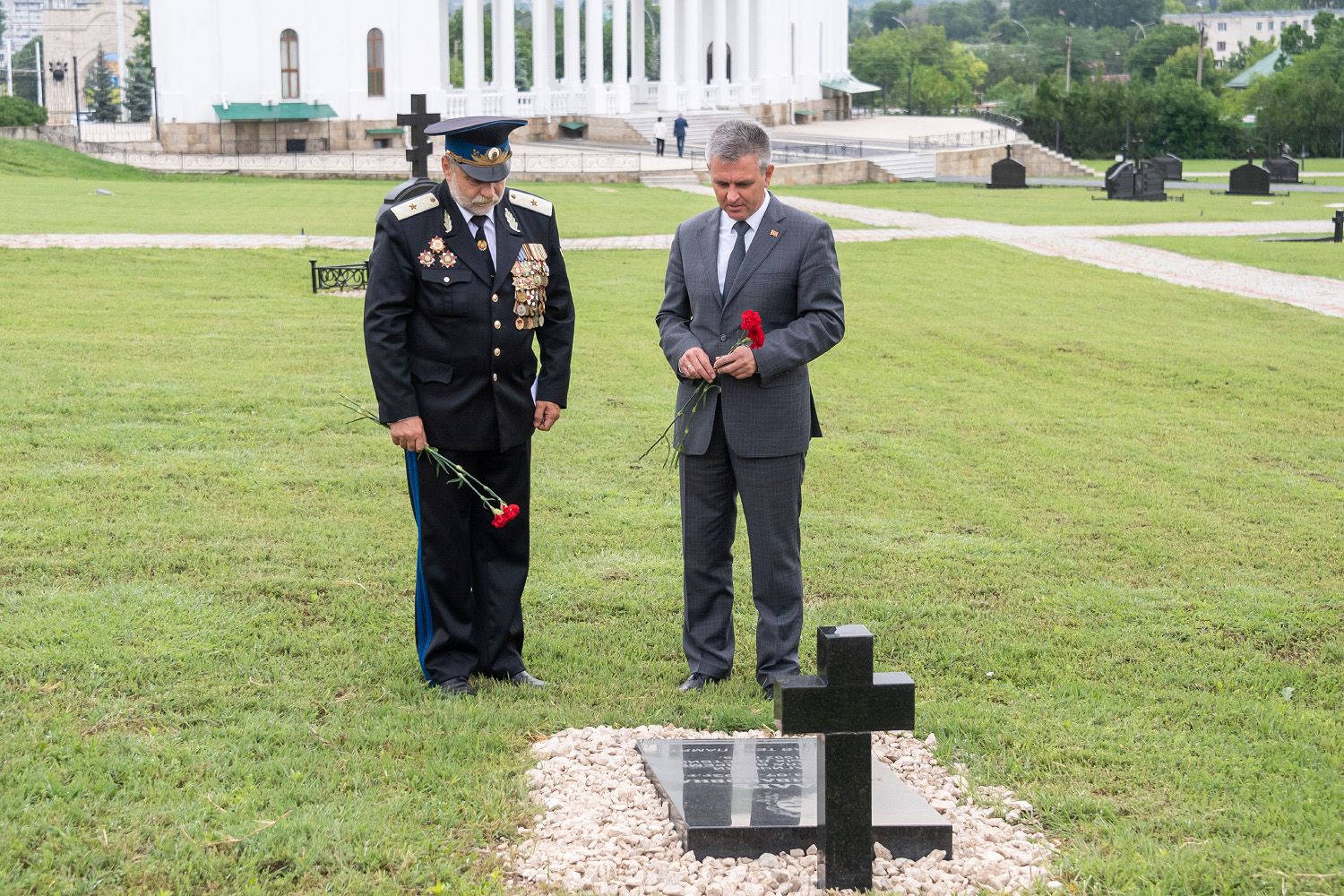 Another modern memorial sign installed on the territory of the necropolis is the Cossack Memorial Cross. It appeared here last year, symbolizing the heroism of the Cossacks who gave their lives defending Prindestrovie from the Moldovan nationalist aggressors. The monument was created in Bendery with funds raised by representatives of the local Cossacks, with the assistance of the leadership of the city and the republic. Vadim Krasnoselsky laid scarlet carnations at the Cross.