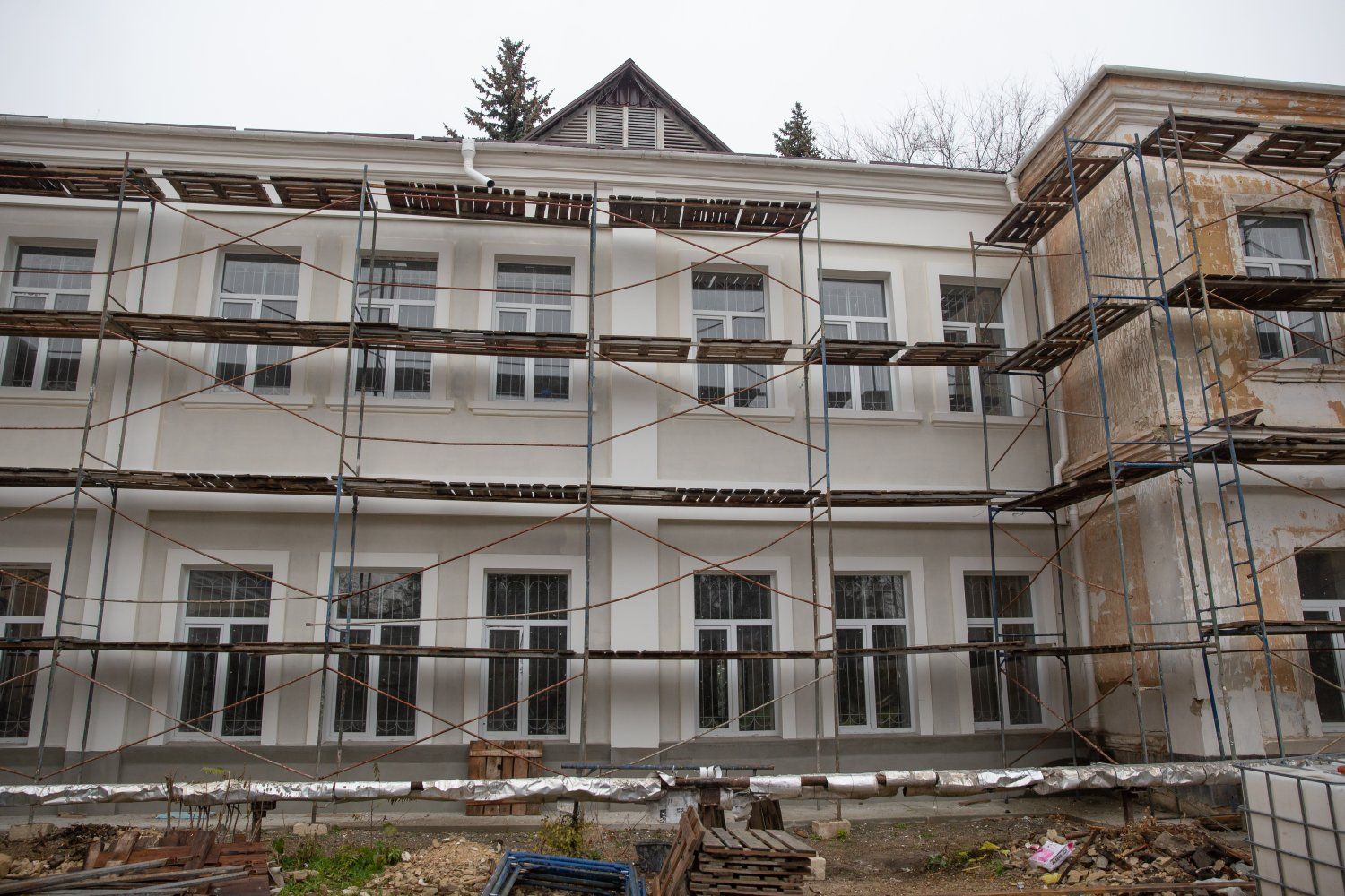 21 Nov., 2024, 17:04The Head of the State Service for Culture and Historical Heritage of the PMR Maria Kyrmyz told and showed Vadim Krasnoselsky today what work has been carried out within the framework of the capital investment program at the Pridnestrovian State Art Museum, located in Bendery. The work was planned in several stages. Three million rubles were allocated from the 2024 capital investment fund. Utility networks have been replaced to date, the necessary partitions have been erected, and the floors on the first floor have been put in order. The President was told that the basement of the premises was in a deplorable state. The roof required repair. The facade is being put in order from the side of the museum courtyard so far. The front facade is the next stage. Vadim Krasnoselsky drew attention to the need to preserve the historical elements of its design. It would be useful to provide lighting, they said in the course of the meeting. The materials were discussed. Textured paint of local production was chosen for the current facade work. They talked about the fate of the outbuildings. They are all in a dilapidated state and will be demolished.