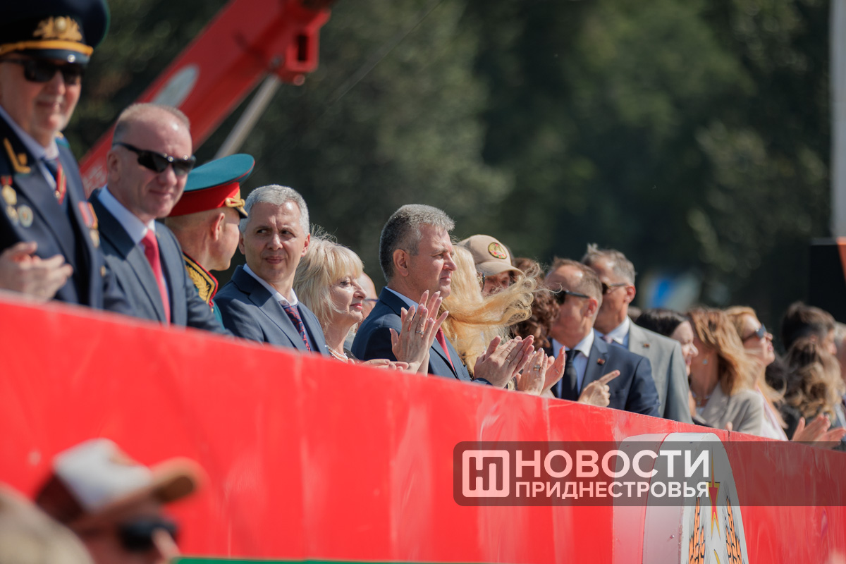 Then, ballroom groups from Tiraspol came out onto the square to the Pridnestrovian Waltz by local author Alexander Tokarev. Suvorov cadets and military school students joined them. The orchestra of the General Staff of the Armed Forces of the PMR provided musical accompaniment.