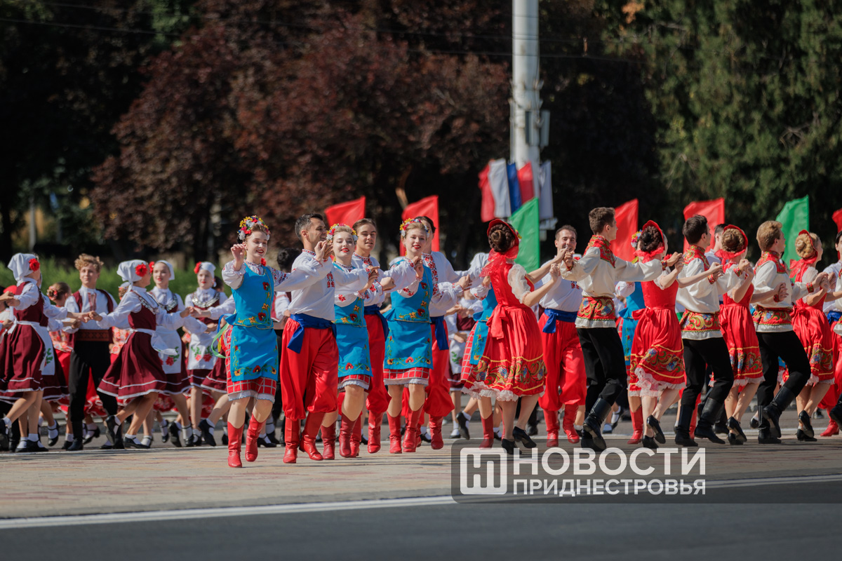 Tiraspol, September 2. /Novosti Pridnestrovya/. On the 35th anniversary of the PMR, the youth of the republic presented the largest dance production in the history of our state. After the festive parade, beginner and professional dancers, leading choirs of the country, as well as Suvorov cadets and military school students showed the Pridnestrovian Suite, in which 780 people took part.