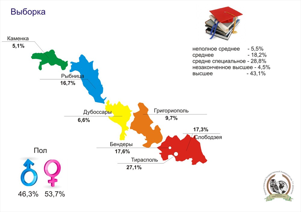 The public opinion survey was conducted in all cities and districts of the PMR through a random and representative sample of 960 respondents.
