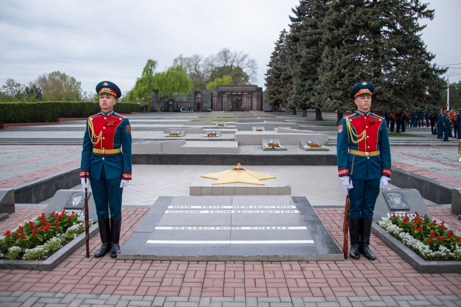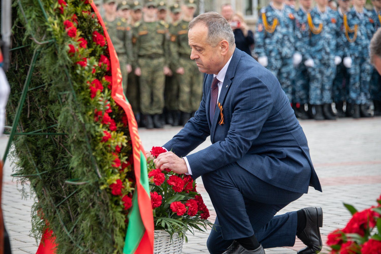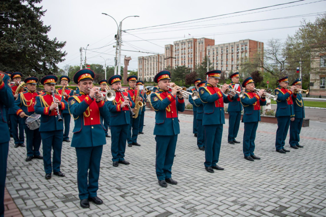 The first persons of the state have gathered today at the capital's Memorial of Glory. A wreath, reminding that the memory of the great feat of the Soviet liberator soldier is inextinguishable, was lowered today to the Eternal Flame by the PMR President Vadim Krasnoselsky on behalf of the entire Pridnestrovian people. A scattering of fresh flowers was at the pedestals of monuments and on stone slabs on which the names of 1252 soldiers who gave their lives for peace and freedom were carved. Residents and guests of Tiraspol – many with portraits of heroic ancestors in their hands and with symbolic St. George ribbons on their chests – came to honor the memory of the defenders of the Motherland.