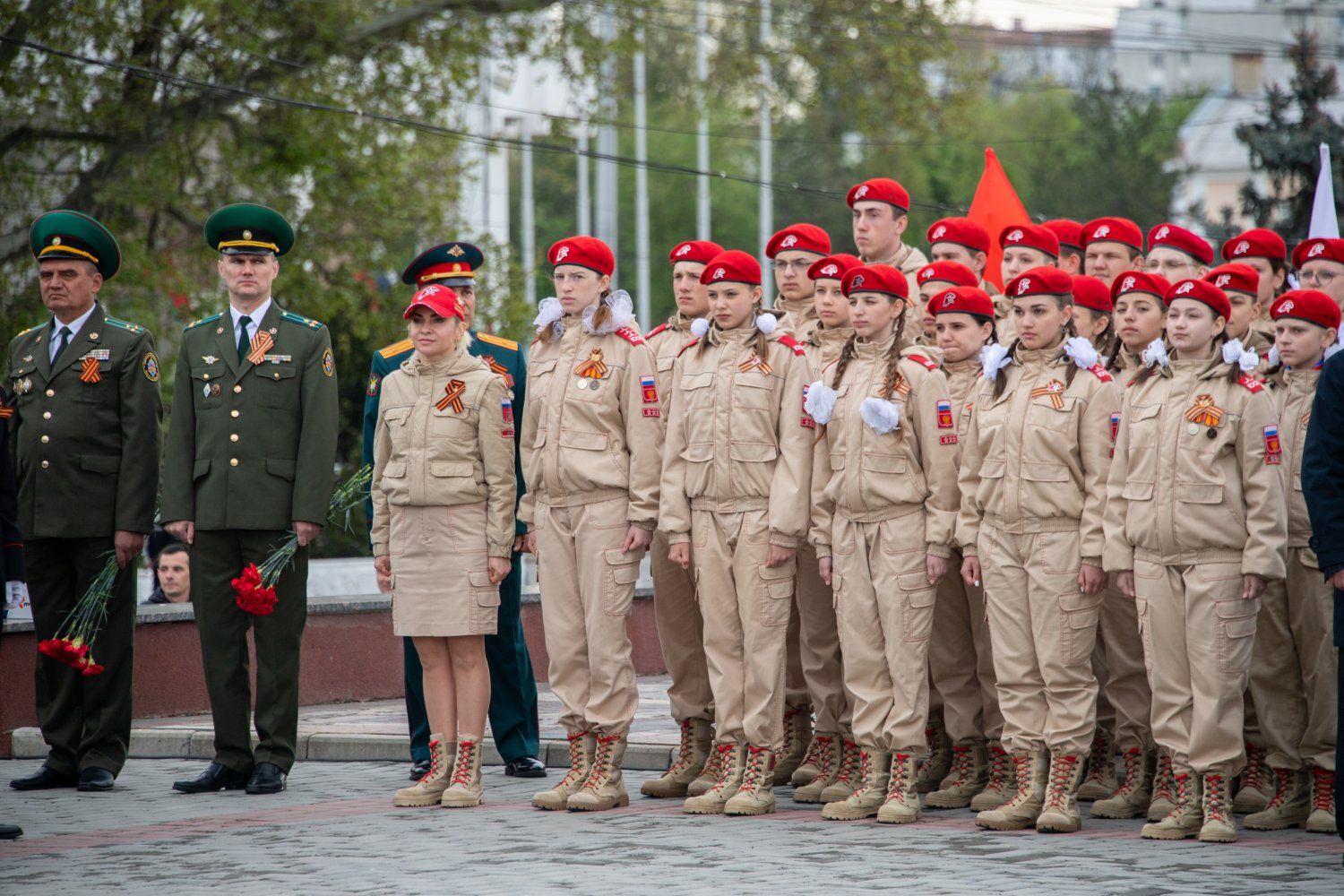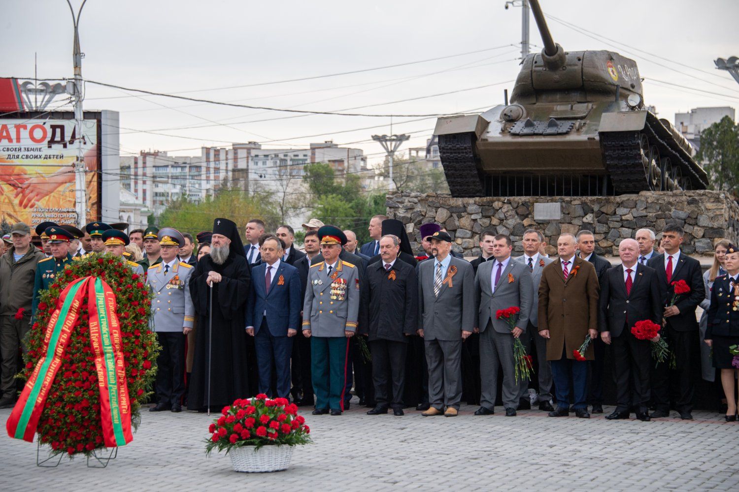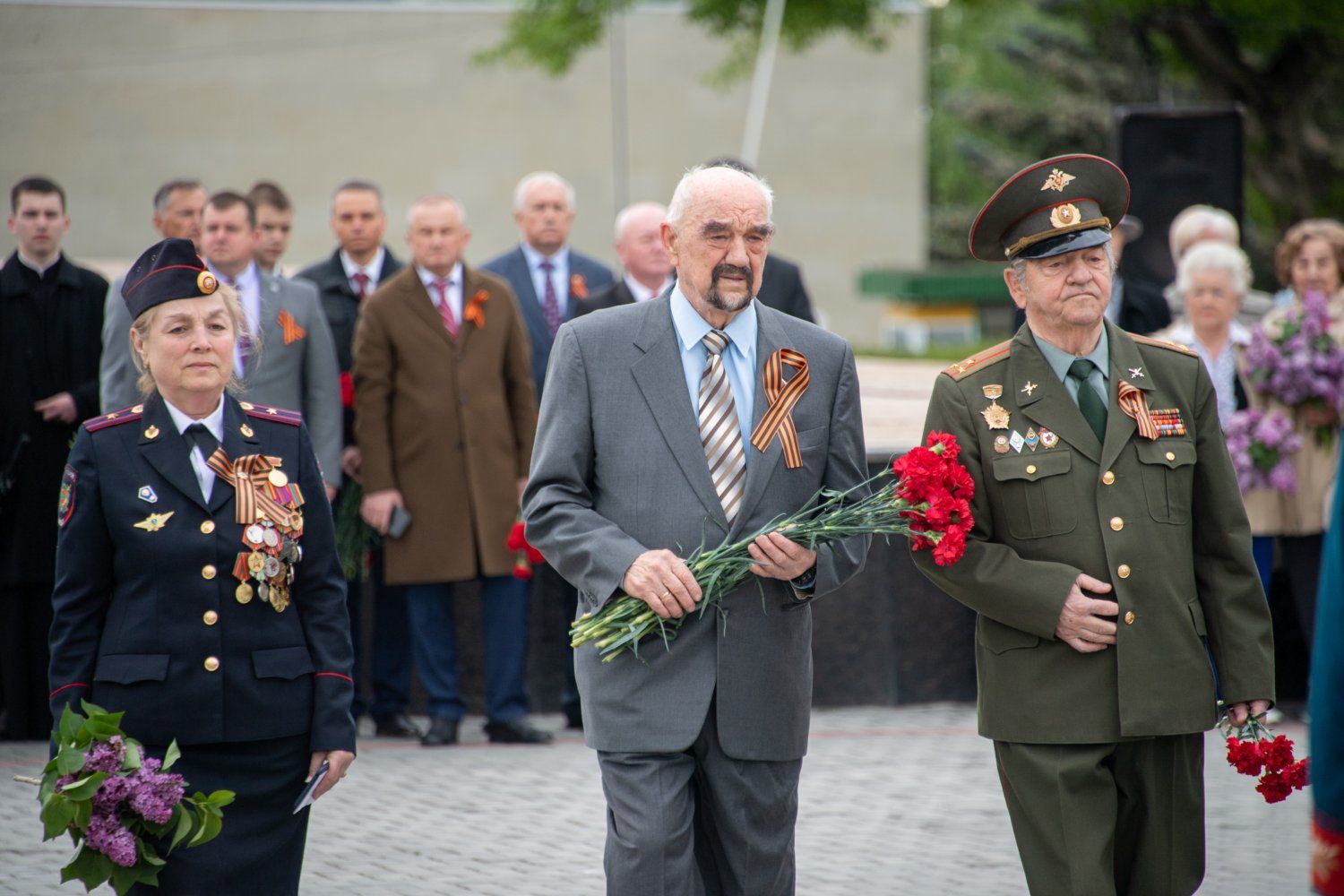 The first persons of the state have gathered today at the capital's Memorial of Glory. A wreath, reminding that the memory of the great feat of the Soviet liberator soldier is inextinguishable, was lowered today to the Eternal Flame by the PMR President Vadim Krasnoselsky on behalf of the entire Pridnestrovian people. A scattering of fresh flowers was at the pedestals of monuments and on stone slabs on which the names of 1252 soldiers who gave their lives for peace and freedom were carved. Residents and guests of Tiraspol – many with portraits of heroic ancestors in their hands and with symbolic St. George ribbons on their chests – came to honor the memory of the defenders of the Motherland.