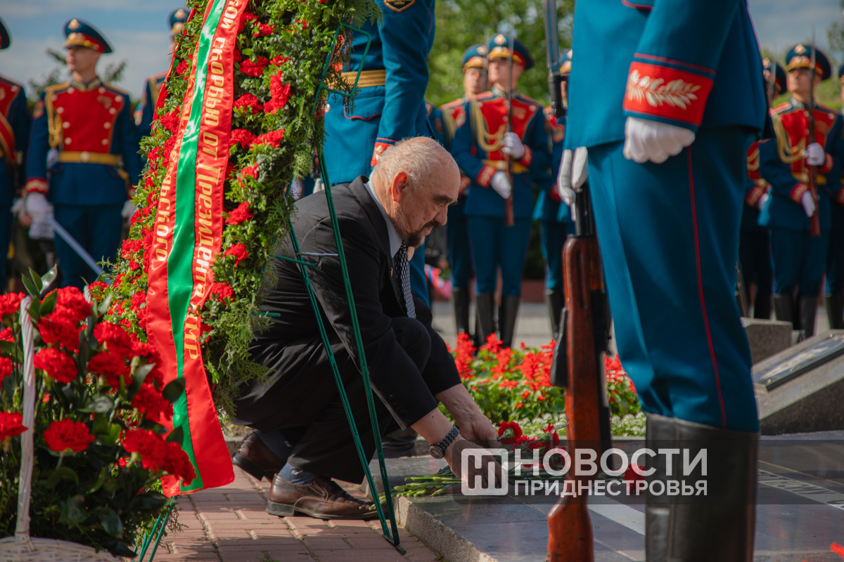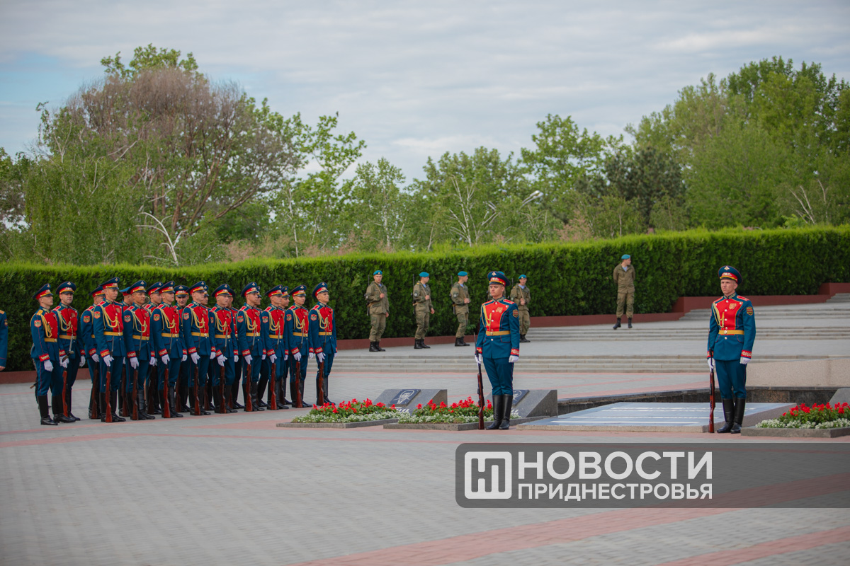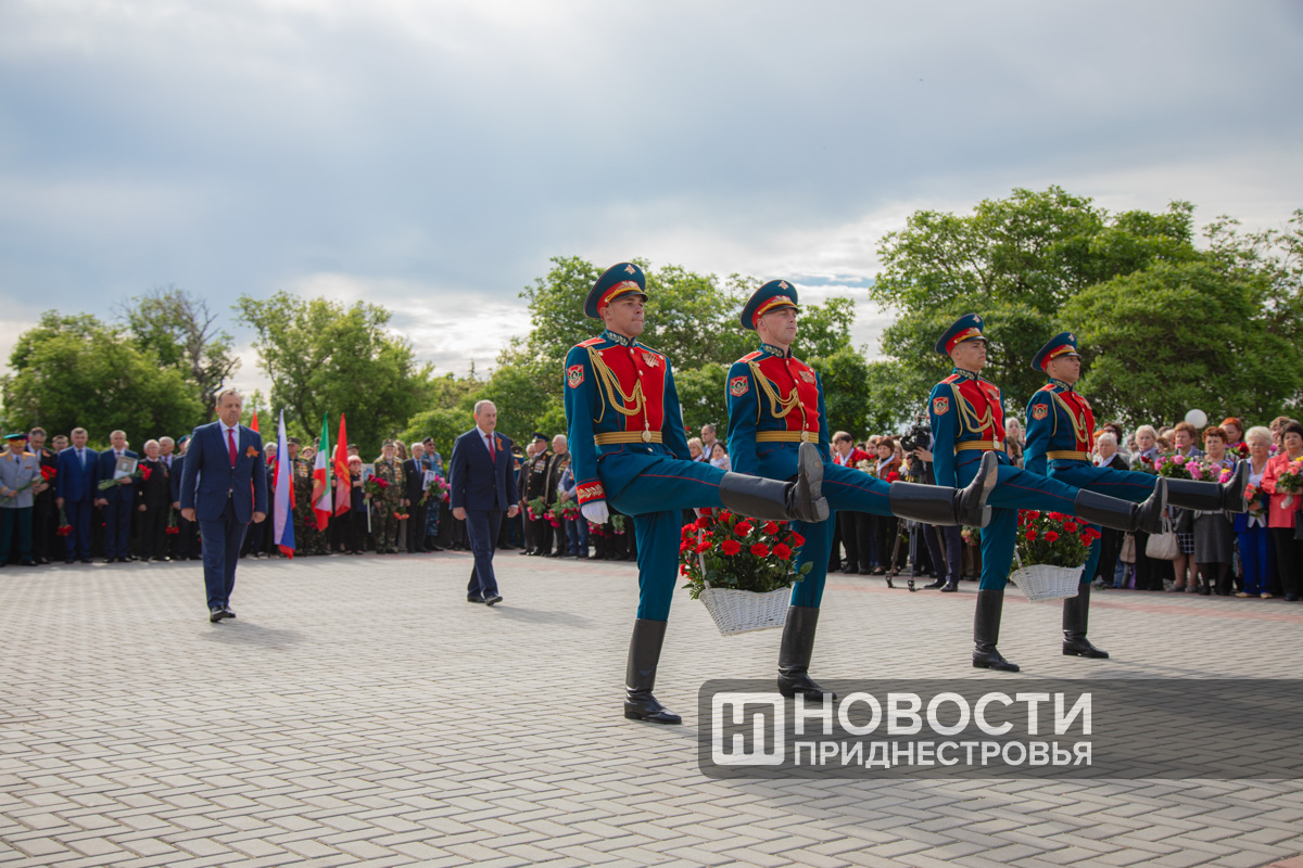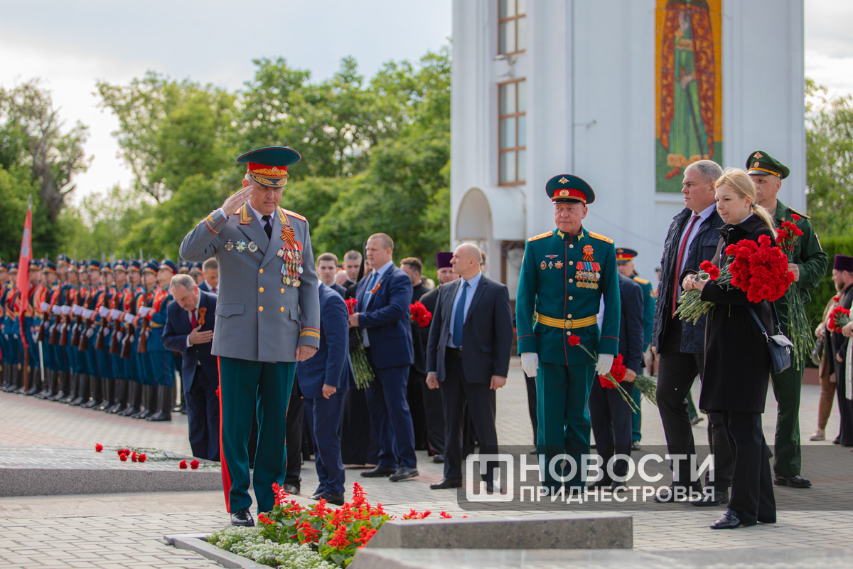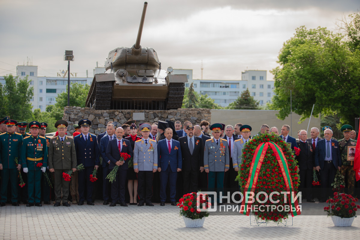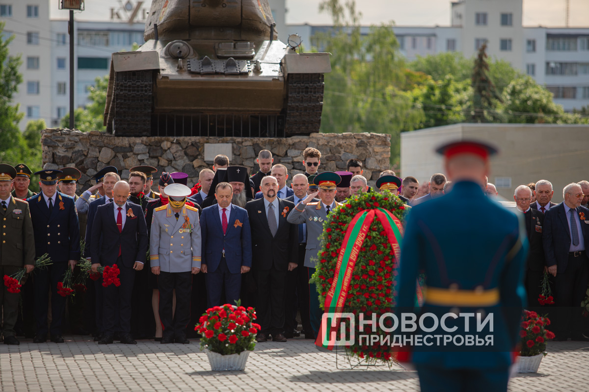 Official celebrations dedicated to the 79th anniversary of the Victory of the Soviet people in the Great Patriotic War of 1941-1945 were opened by a traditional ceremony at the capital's Memorial of Glory. The leadership of the republic and the city, headed by the PMR President Vadim Krasnoselsky, walked from the building in which the legislative and executive authorities are located to the T-34-85 tank. The combat vehicle that towers over the memorial walked the military paths of the Great Patriotic War as part of the 7th Guards Mechanized Corps, liberating Moldova, Ukraine, Bulgaria and Hungary. It was shot down near Lake Balaton in the Budapest offensive operation. The commander, 20-year-old Boris Sergeev, died heroically on January 22, 1945 in Hungary. Junior lieutenant Sergeev was buried in a mass grave in Tiraspol at the insistence of the father, who personally found the body of his son and his comrade. The tank arrived in the city in April 1945. The monument under it, a capsule with soil brought from Mamayev Kurgan (Volgograd) was laid in 1968. Memorial complex was opened four years later, the T-34 became a significant component of which. The Eternal Flame was lit on February 23, 1972, at the Tomb of the Unknown Soldier, to which Pridnestrovians bring flowers. The President of the Pridnestrovian Moldavian Republic Vadim Krasnoselsky on behalf of the entire Pridnestrovian people after the traditional minute of silence laid a wreath of flowers to the undying symbol of eternal gratitude and inexhaustible memory today. A scattering of fresh flowers decorated and warmed the stone slabs with the names of the defenders who in different years gave their lives for peace on Pridnestrovians soil, as well as the pedestals of the monuments of the Tiraspol Memorial of Glory.