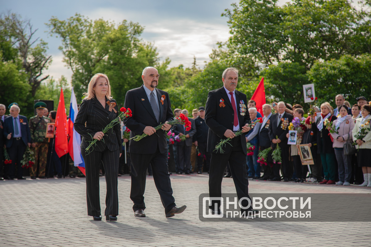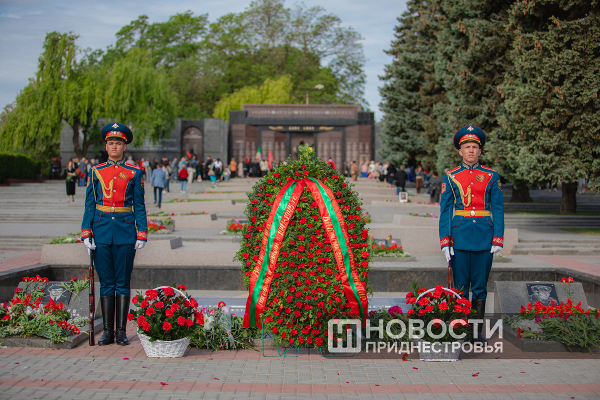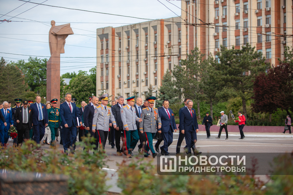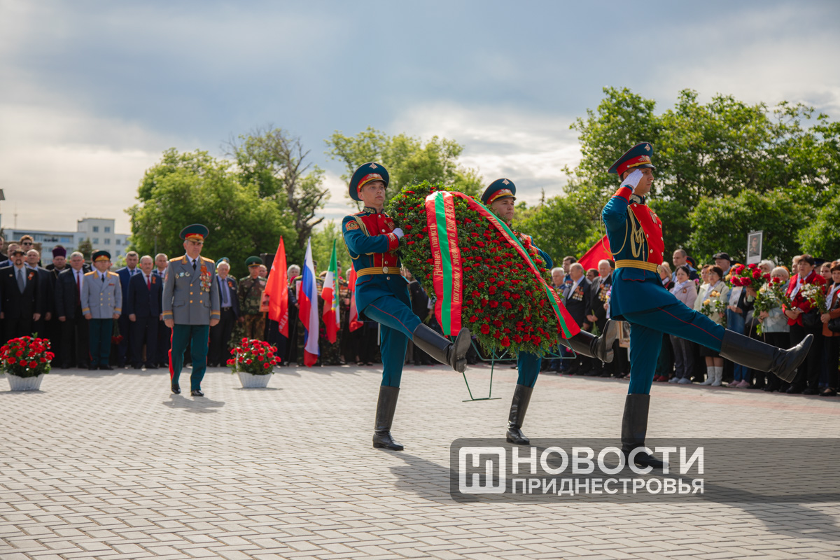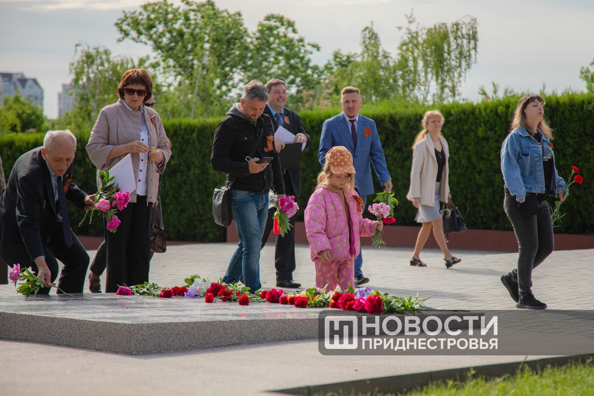 Official celebrations dedicated to the 79th anniversary of the Victory of the Soviet people in the Great Patriotic War of 1941-1945 were opened by a traditional ceremony at the capital's Memorial of Glory. The leadership of the republic and the city, headed by the PMR President Vadim Krasnoselsky, walked from the building in which the legislative and executive authorities are located to the T-34-85 tank. The combat vehicle that towers over the memorial walked the military paths of the Great Patriotic War as part of the 7th Guards Mechanized Corps, liberating Moldova, Ukraine, Bulgaria and Hungary. It was shot down near Lake Balaton in the Budapest offensive operation. The commander, 20-year-old Boris Sergeev, died heroically on January 22, 1945 in Hungary. Junior lieutenant Sergeev was buried in a mass grave in Tiraspol at the insistence of the father, who personally found the body of his son and his comrade. The tank arrived in the city in April 1945. The monument under it, a capsule with soil brought from Mamayev Kurgan (Volgograd) was laid in 1968. Memorial complex was opened four years later, the T-34 became a significant component of which. The Eternal Flame was lit on February 23, 1972, at the Tomb of the Unknown Soldier, to which Pridnestrovians bring flowers. The President of the Pridnestrovian Moldavian Republic Vadim Krasnoselsky on behalf of the entire Pridnestrovian people after the traditional minute of silence laid a wreath of flowers to the undying symbol of eternal gratitude and inexhaustible memory today. A scattering of fresh flowers decorated and warmed the stone slabs with the names of the defenders who in different years gave their lives for peace on Pridnestrovians soil, as well as the pedestals of the monuments of the Tiraspol Memorial of Glory.
