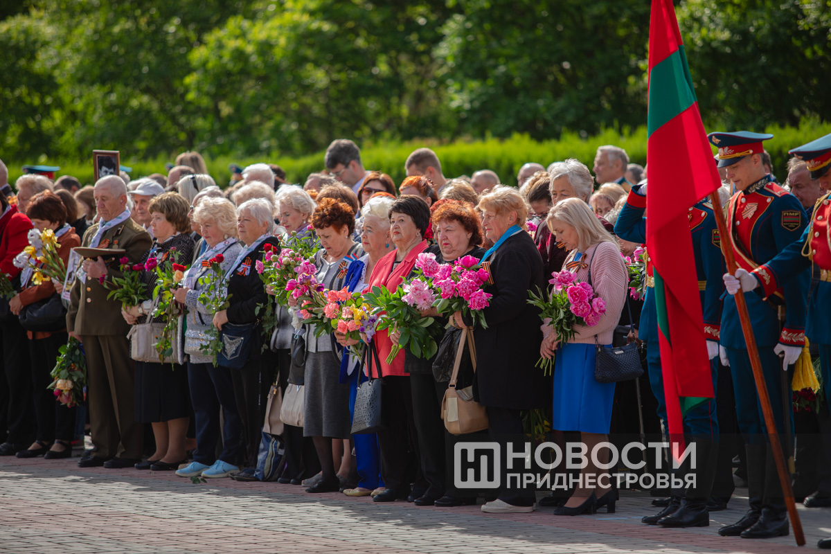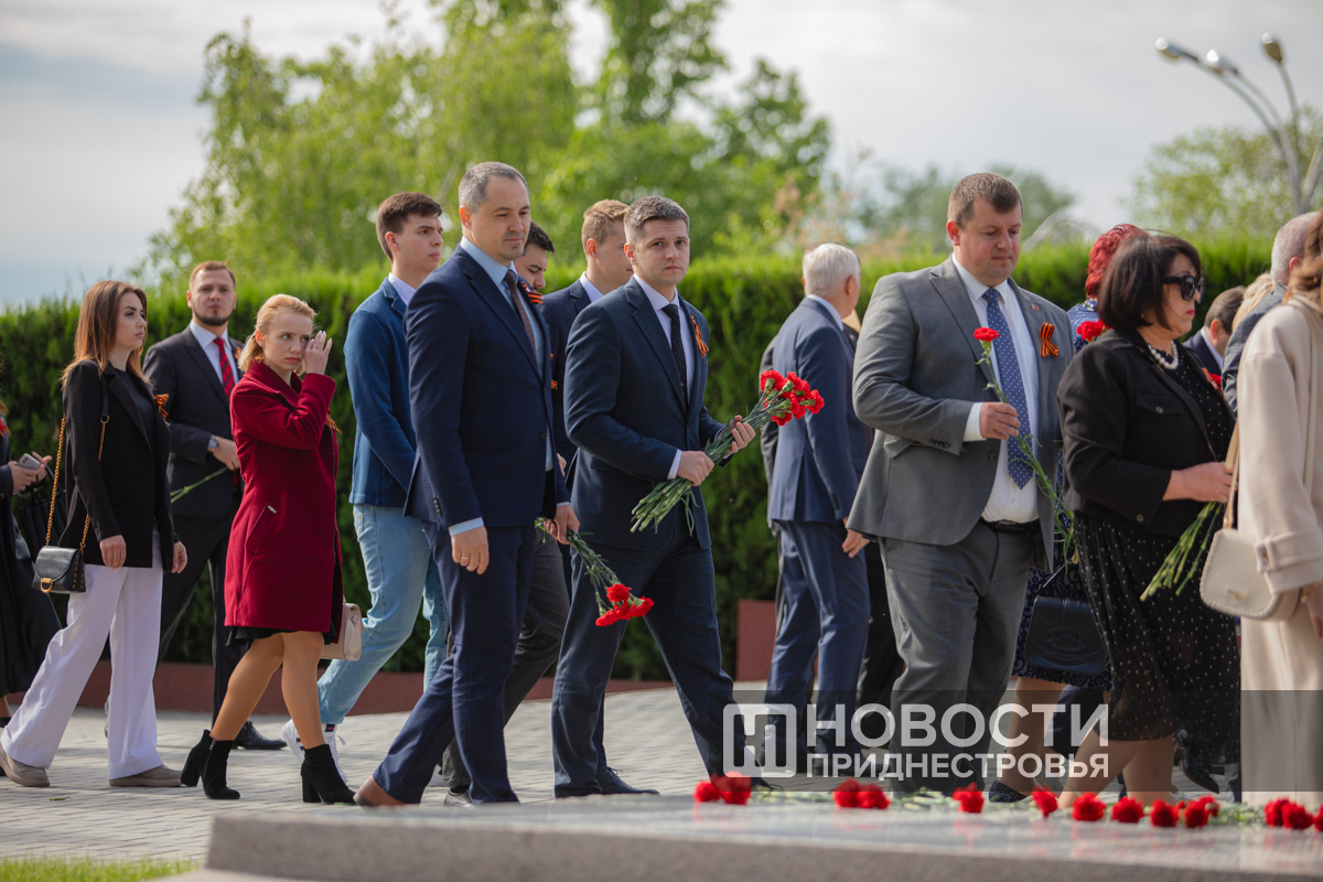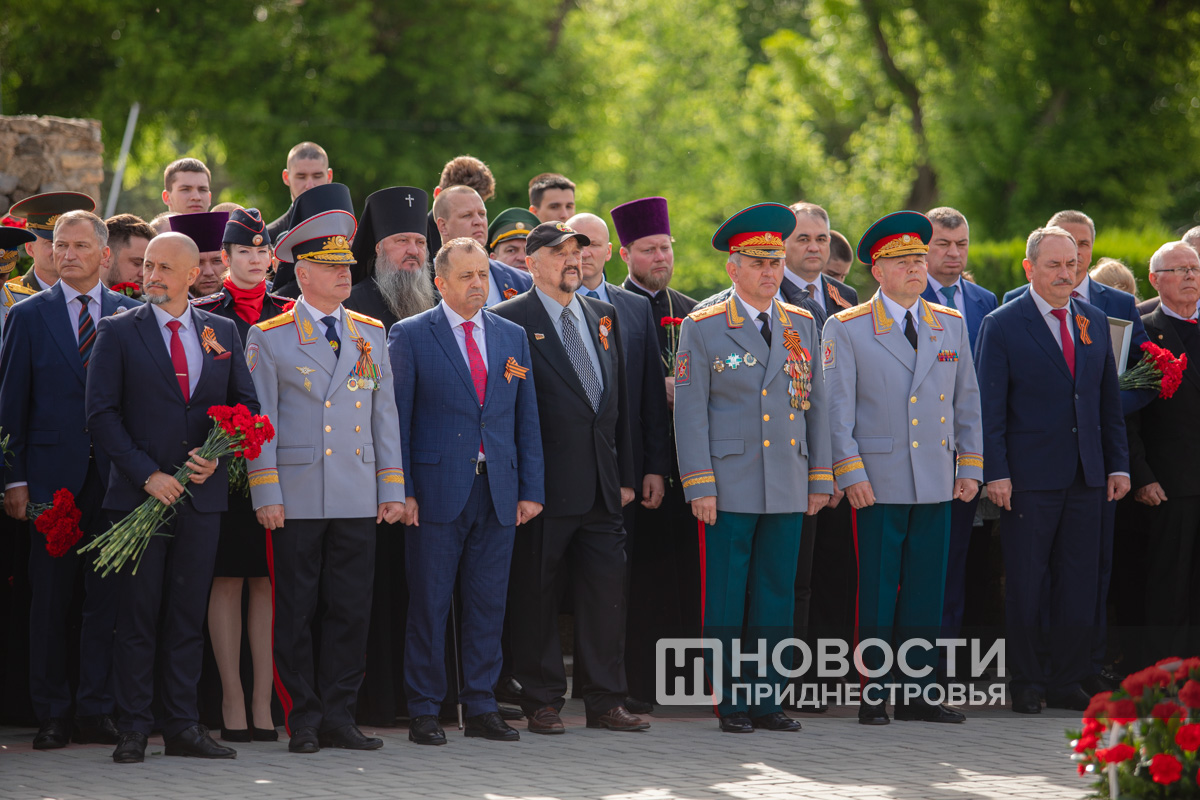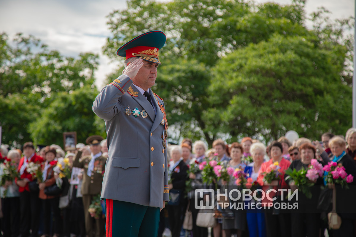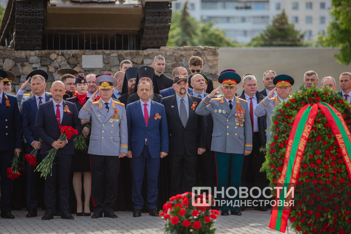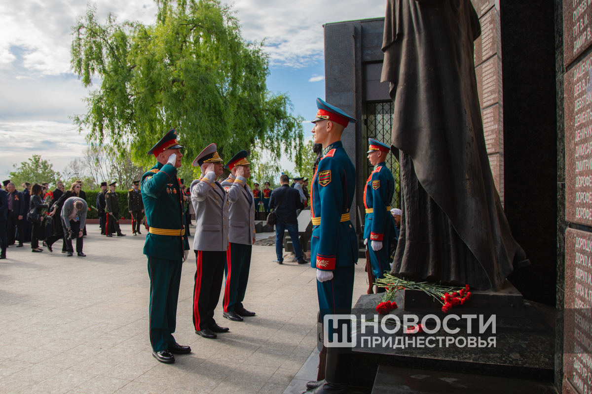 Official celebrations dedicated to the 79th anniversary of the Victory of the Soviet people in the Great Patriotic War of 1941-1945 were opened by a traditional ceremony at the capital's Memorial of Glory. The leadership of the republic and the city, headed by the PMR President Vadim Krasnoselsky, walked from the building in which the legislative and executive authorities are located to the T-34-85 tank. The combat vehicle that towers over the memorial walked the military paths of the Great Patriotic War as part of the 7th Guards Mechanized Corps, liberating Moldova, Ukraine, Bulgaria and Hungary. It was shot down near Lake Balaton in the Budapest offensive operation. The commander, 20-year-old Boris Sergeev, died heroically on January 22, 1945 in Hungary. Junior lieutenant Sergeev was buried in a mass grave in Tiraspol at the insistence of the father, who personally found the body of his son and his comrade. The tank arrived in the city in April 1945. The monument under it, a capsule with soil brought from Mamayev Kurgan (Volgograd) was laid in 1968. Memorial complex was opened four years later, the T-34 became a significant component of which. The Eternal Flame was lit on February 23, 1972, at the Tomb of the Unknown Soldier, to which Pridnestrovians bring flowers. The President of the Pridnestrovian Moldavian Republic Vadim Krasnoselsky on behalf of the entire Pridnestrovian people after the traditional minute of silence laid a wreath of flowers to the undying symbol of eternal gratitude and inexhaustible memory today. A scattering of fresh flowers decorated and warmed the stone slabs with the names of the defenders who in different years gave their lives for peace on Pridnestrovians soil, as well as the pedestals of the monuments of the Tiraspol Memorial of Glory.