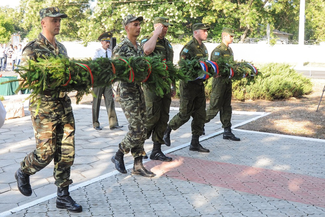 During the rally, soldiers of the Russian peacekeeping contingent were presented with Pridnestrovie's government awards. After that, flowers were laid to the memorial sign Blessed Are the Peacemakers and the Memorial of Remembrance and Sorrow.