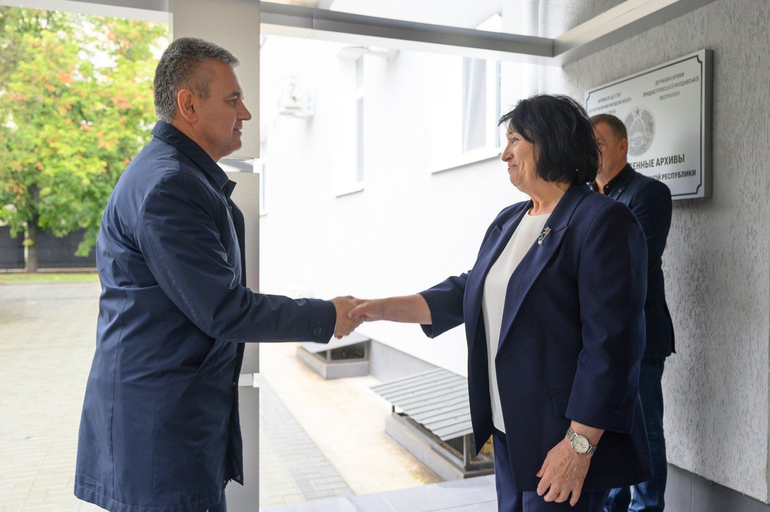 07 Oct., 2025, 14:36The State Service for Documentation and Archives Management of the PMR has been located in a new building for a year – renovated, specially furnished, and equipped to meet its functional needs. The President inspected the development of the updated infrastructure today. Vadim Krasnoselsky was accompanied by Chairman of the PMR Government Alexander Rozenberg and Head of the legislative branch, Alexander Korshunov. Zinaida Todorashko, Head of the State Service for Documentation and Archives Management, and the heads of the service's departments reported on the work accomplished. It was recalled during the discussion, that the state archives had been waiting for decades to be provided with appropriate conditions. The republic's leadership was thanked for implementing a project that is significant both for its staff and for the country as a whole. The extensive work carried out to preserve Pridnestrovian history was discussed. The project involves not only the development of archives, but also the creation of a museum quarter in Tiraspol, a military-historical memorial complex in Bendery, a memorial in Dubossary, a museum at PSU, the placement of a specialized faculty in the main building of the state university, introducing schoolchildren and students to museum and excursion culture, the holding of open history lessons by the Head of State, and many other diverse events.