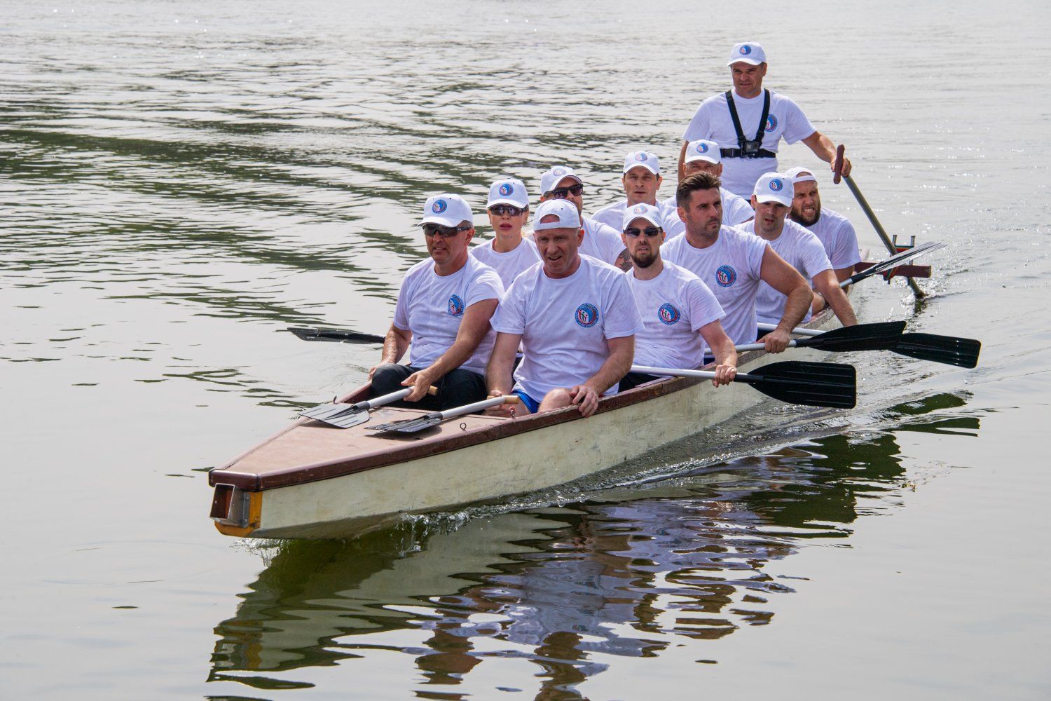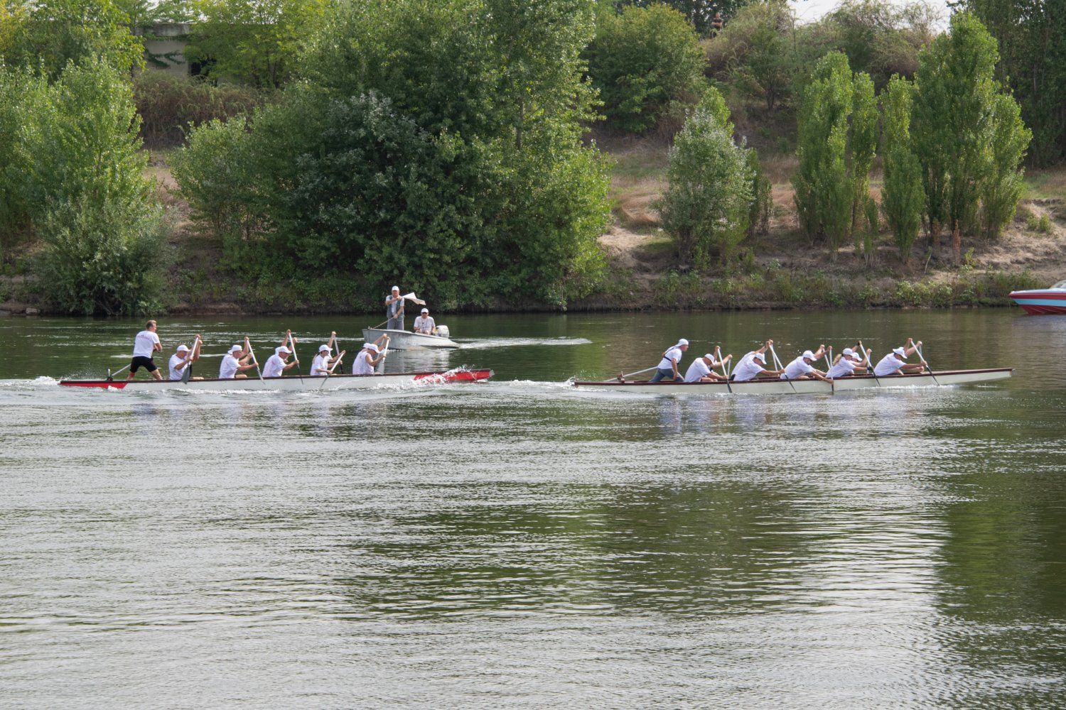 26 Aug., 2022, 12:34Vadim Krasnoselsky – is a right rower. His wife Svetlana Krasnoselskaya is behind him (the mixed composition of the teams is prescribed in the regatta regulation). According to the drawing of lots, the team of the Presidential Administration competed in tandem with the team of the legislative body of the republic and won, despite a less successful position – the so-called near water (the first lane from the shore). The time for the presidential team to complete the 300-meter distance is 1 minute 16 seconds.