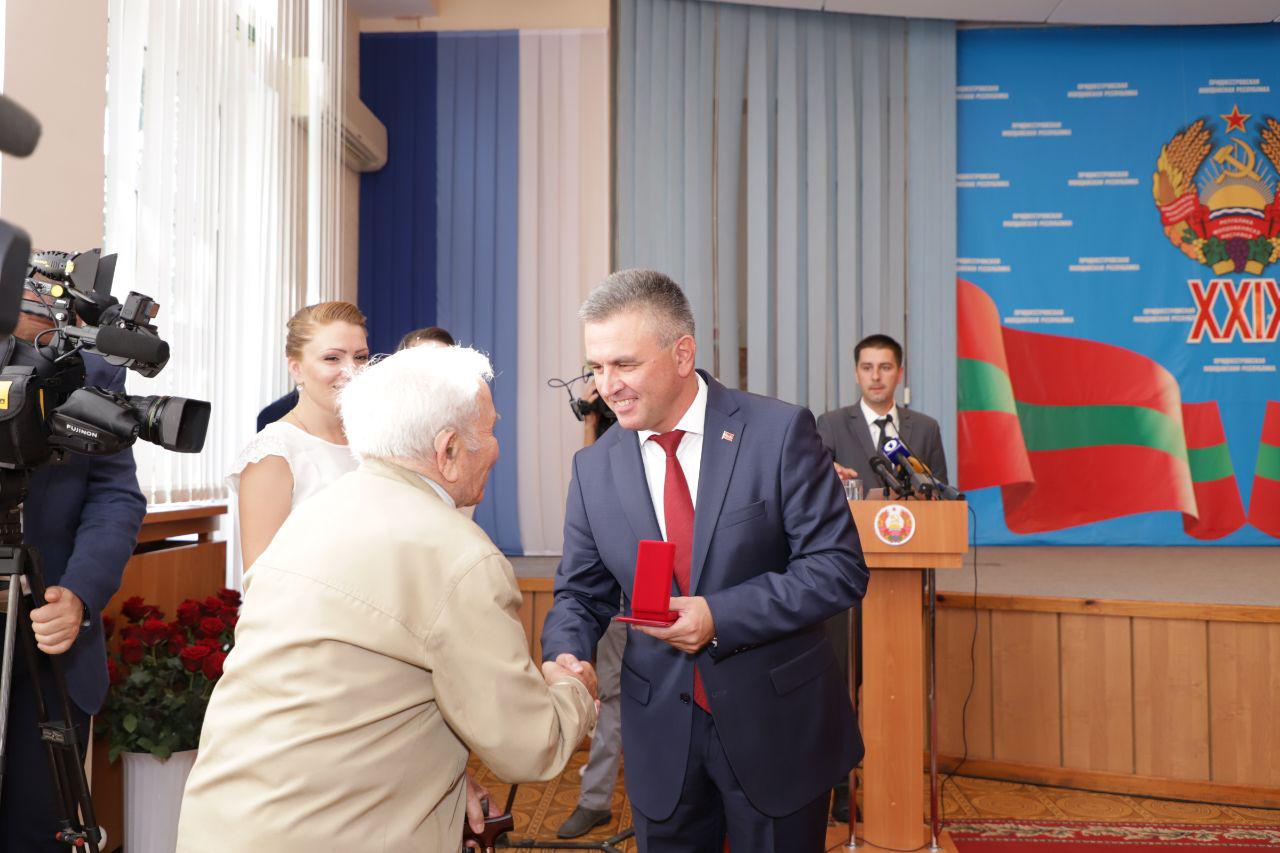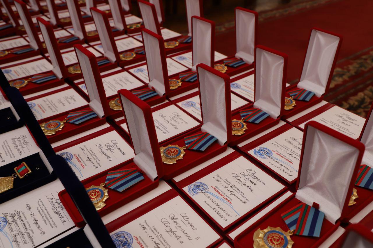 Almost a hundred worthy representatives of the Pridnestrovian society received awards and documents on conferring honorary titles from the hands of the heads of state, legislative and executive authorities.