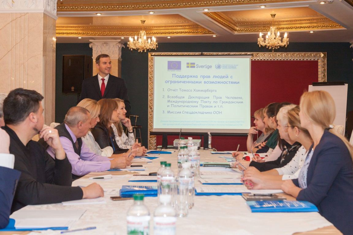 Tiraspol, 26 October. /Novosti Pridnestrovya/. A training seminar on ensuring the rights of disabled citizens was held in Tiraspol. The event was organised by Pridnestrovie's foreign ministry and the UN Office for Human Rights. Dedicated specialists from the Healthcare Ministry, Ministry of Public Education, Ministry of Social Security and Labour, heads of social security organisations and Supreme Council members took part in it.