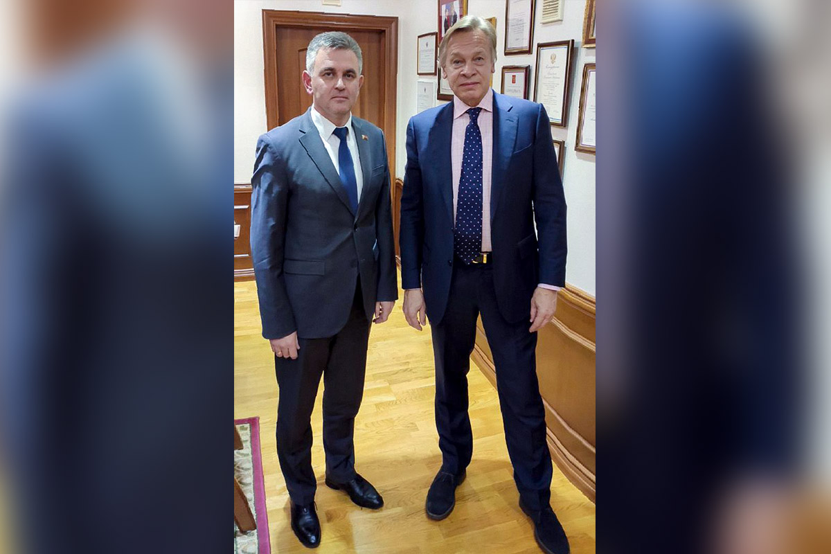 Vadim Krasnoselsky and Alexei Pushkov in the course of the meeting discussed in detail the current situation in the negotiation process on the Moldovan-Pridnestrovian settlement. The issues of the general regional situation, as well as the existing threats to the peacekeeping operation on the Dniester were discussed.