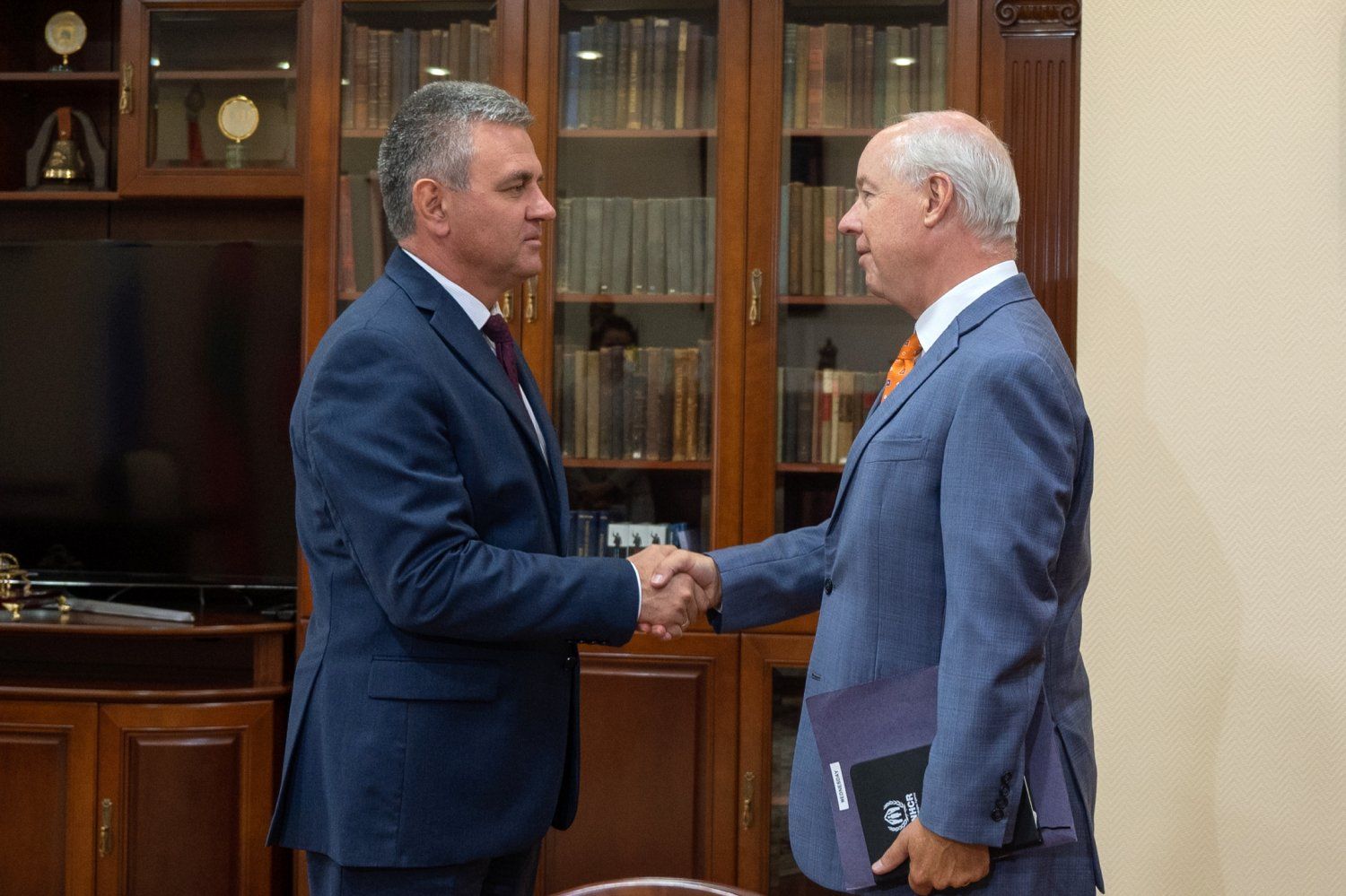 Welcoming the guests, Vadim Krasnoselsky noted the importance of constantly maintaining working contacts, spoke about the need for systematic dialogue, the advantages of timely and comprehensive awareness of current problems for a prompt and effective response. Discussing the state of the negotiation process and the functioning of the “5+2” format, the PMR President noted stagnation. The prospects for activation are foggy, according to the President. Vadim Krasnoselsky drew attention of his interlocutors to Moldova’s withdrawal not only from officially reached and documented agreements, but also from gentleman agreements, as the PMR President classified it. Vadim Krasnoselsky spoke in particular about the difficulties faced by Pridnestrovian officials in terms of freedom of movement. They talked about the many hours detention of a number of Pridnestrovian citizens at the Chisinau airport.