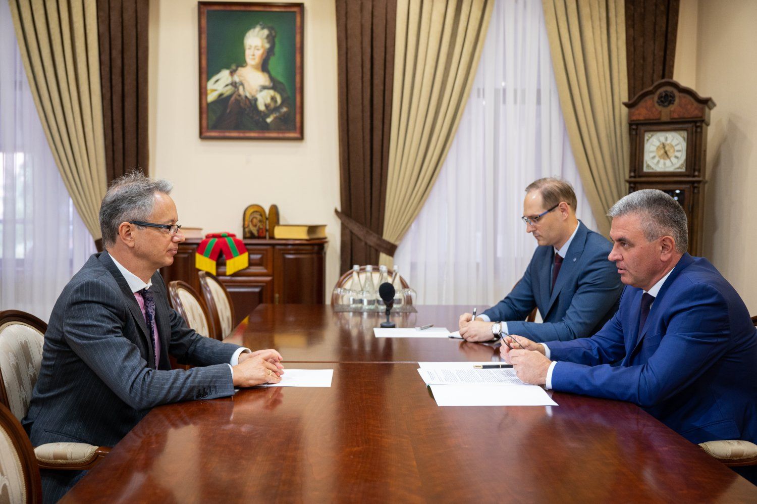 06 Sep., 2022, 13:23Vadim Krasnoselsky met with Claus Neukirch at the presidential executive office. The European diplomat’s visit to Pridnestrovie is a working visit, one of the many over the past four years. He systematically visited the republic, participated in the negotiation process as a representative of the OSCE, came as part of various delegations, periodically met with the PMR President tete-a-tete. The peculiarity of this visit is that it is the final one: Claus Neukirch is leaving the post of Head of the OSCE Mission to Moldova, which he held since September 2018. Vadim Krasnoselsky, welcoming the guest, thanked him for his attention to Pridnestrovie, the efforts made to preserve and intensify the work of the “Permanent Conference…” format, and the desire to find a practical solution to the existing problems on the negotiation agenda. The PMR President highly appreciated the level of competence of the diplomat, noting that the circumstances did not allow closing problematic issues, nevertheless, work was carried out and will be continued with the successor of Claus Neukirch as Head of the OSCE Mission to Moldova, who will take office on October 1 this year. Vadim Krasnoselsky expressed confidence that the experience of working within the framework of the 5+2 format would be useful to the Austrian diplomat in his future activities.