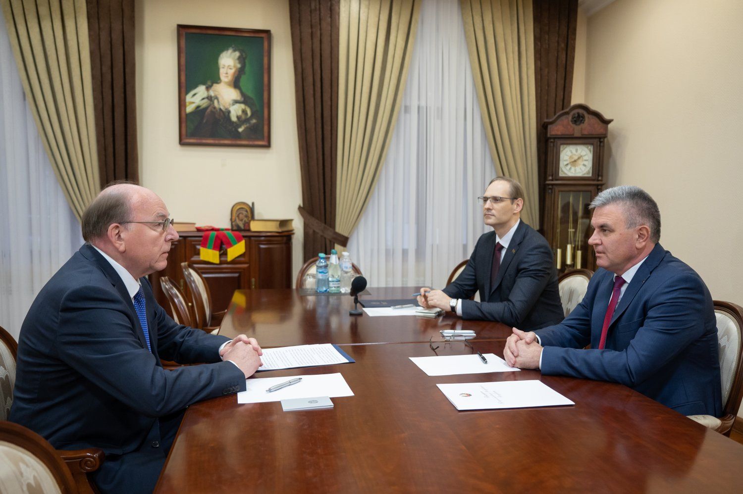 06 Mar., 2024, 15:50Meeting of the PMR President Vadim Krasnoselsky and the Ambassador Extraordinary and Plenipotentiary of the Russian Federation to the Republic of Moldova Oleg Vasnetsov was held at the presidential executive office. The PMR Foreign Minister Vitaly Ignatiev took part in the conversation.
