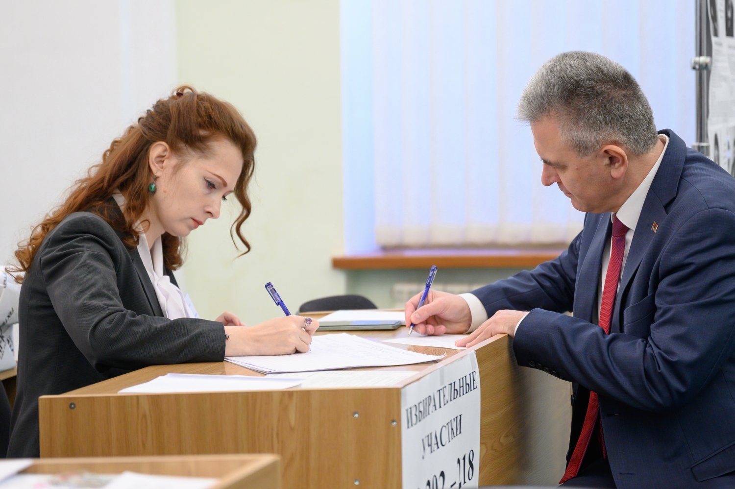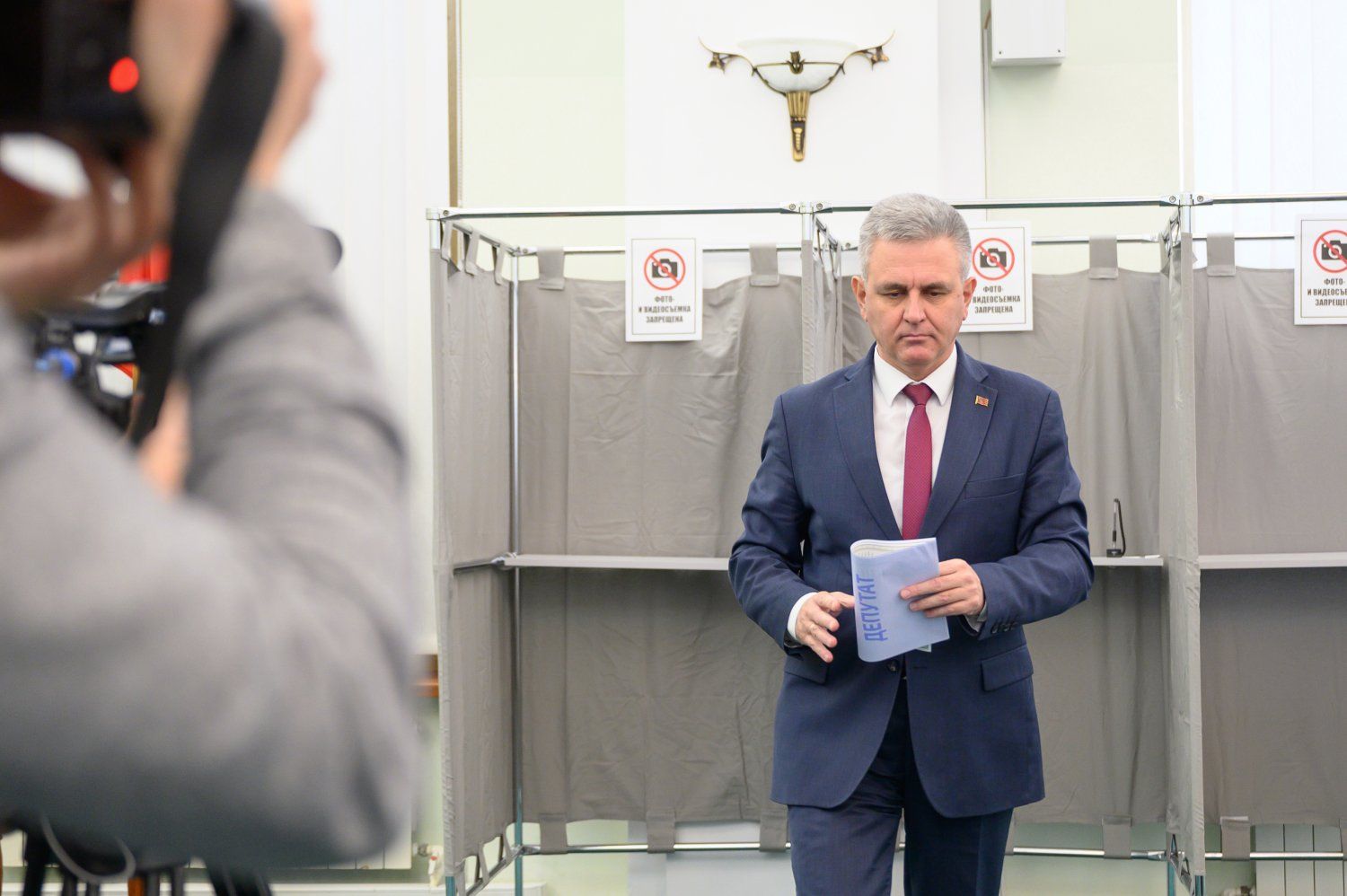 Residents of Tiraspol are voting early at the House of Soviets. The PMR President Vadim Krasnoselsky performed his civic duty at this polling station today.