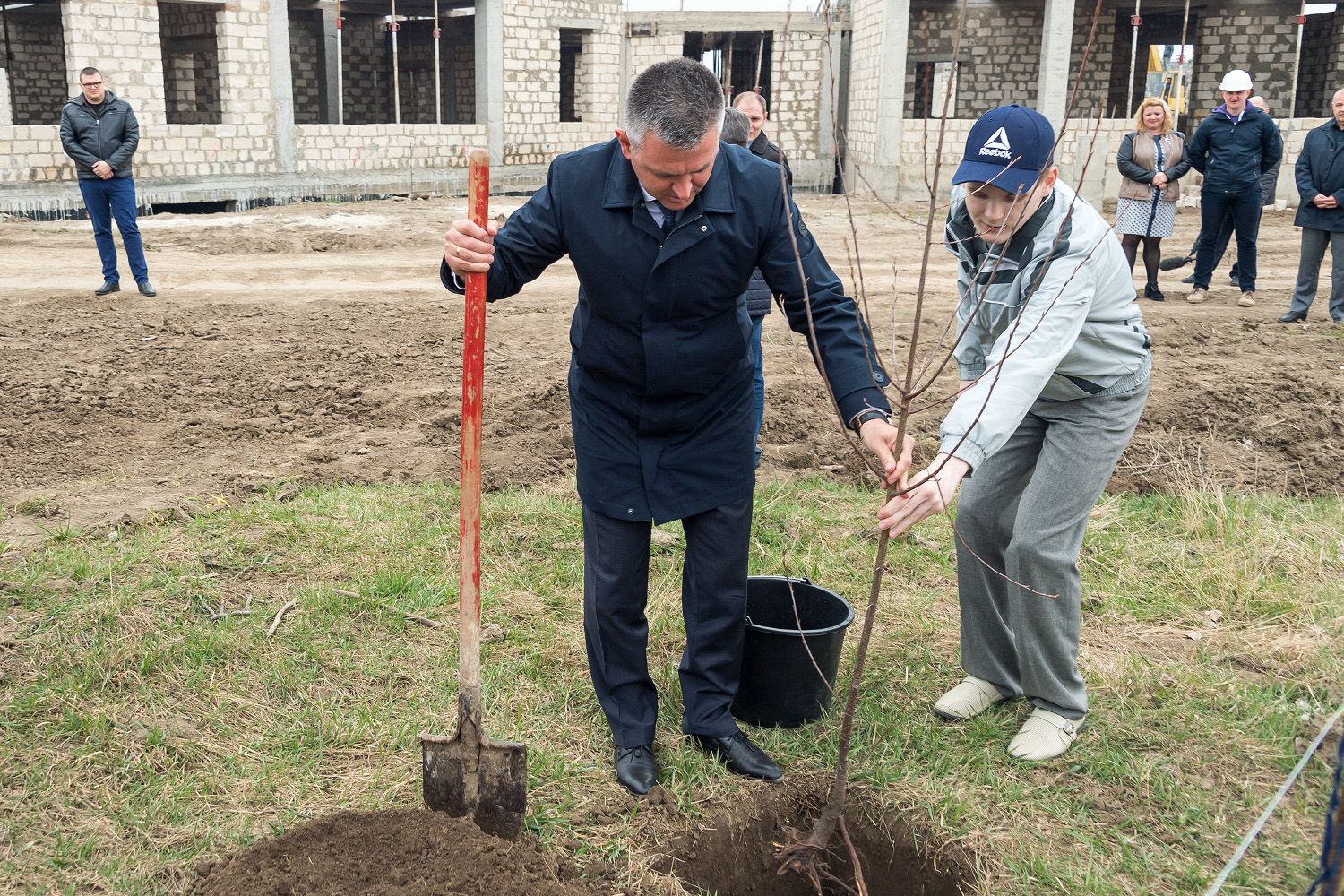 Vadim Krasnoselsky planted a bird-cherry under the windows of the future building of the Dubossary Center for Social and Psychological Rehabilitation of Children with special needs