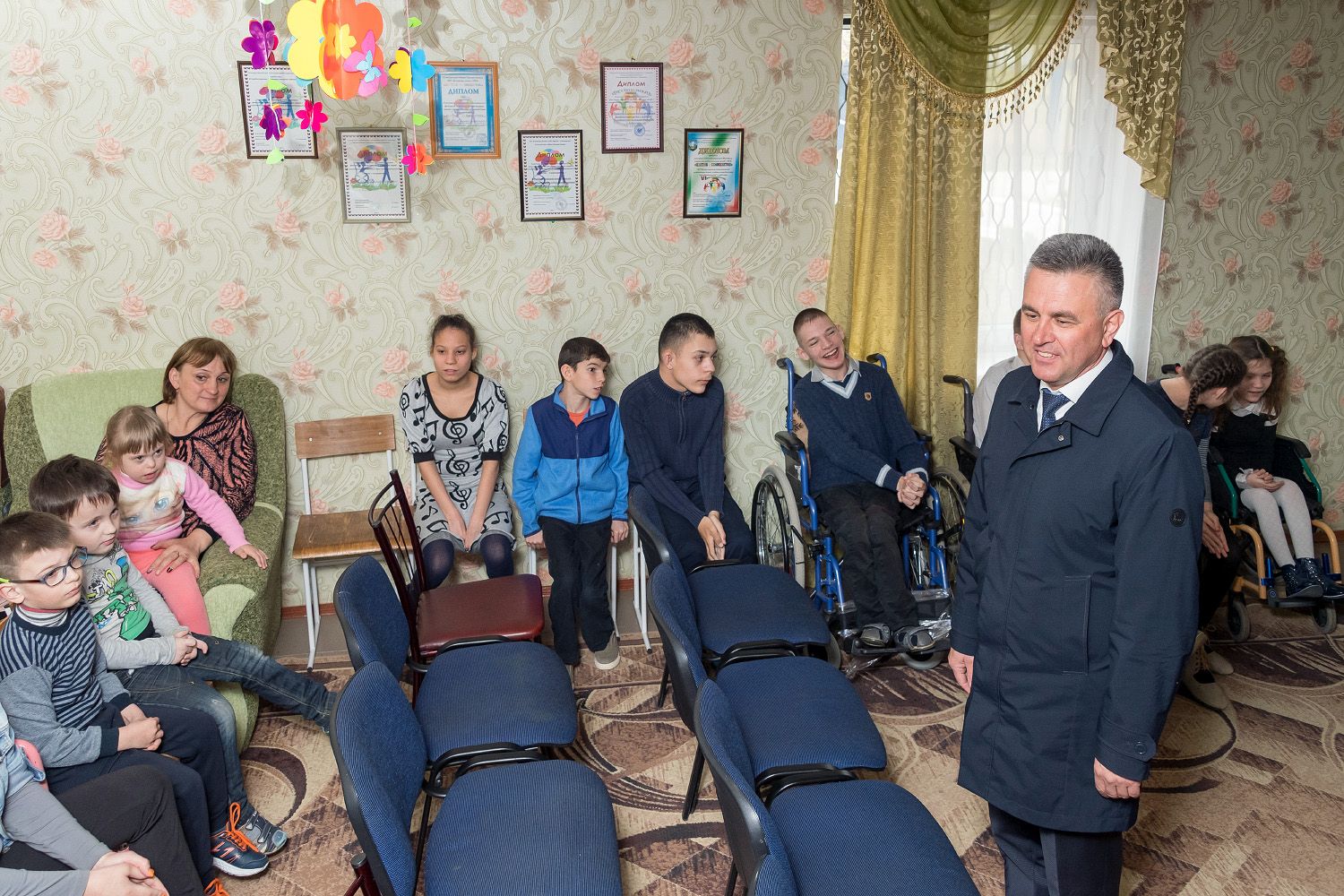 Vadim Krasnoselsky, noting that society is obliged to exert maximum efforts for the adaptation of special guys, emphasized that the state is striving to do everything possible to make their lives easier, to make it comfortable and eventful. In 2018, thanks to the implementation of the capital investment program, the construction of a new building for the Center for the Social and Psychological Rehabilitation of Children with Special Needs of Vital Functions began. According to the project, these are six buildings in which training rooms, bedrooms, a catering department, a dining room, medical offices, including hydropathic and physiotherapy, as well as an inpatient department for a two or three week course of treatment and rehabilitation are supposed to be located, and not only for the Grigoriopol residents, but and children with special needs from other regions of the republic. There are also rooms for occupational classes, which are necessary for the further employment of graduates of the center. An assembly hall is provided. Employees and pupils of the center dreamt of it as a theater platform for performances with which the children, despite the peculiarities of development and the needs of life, perform throughout the republic. The mini-program was presented to the attention of today's honored guests - still in the old building of the center.