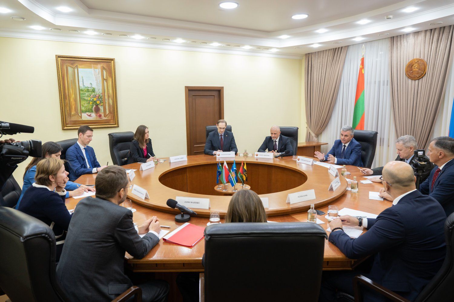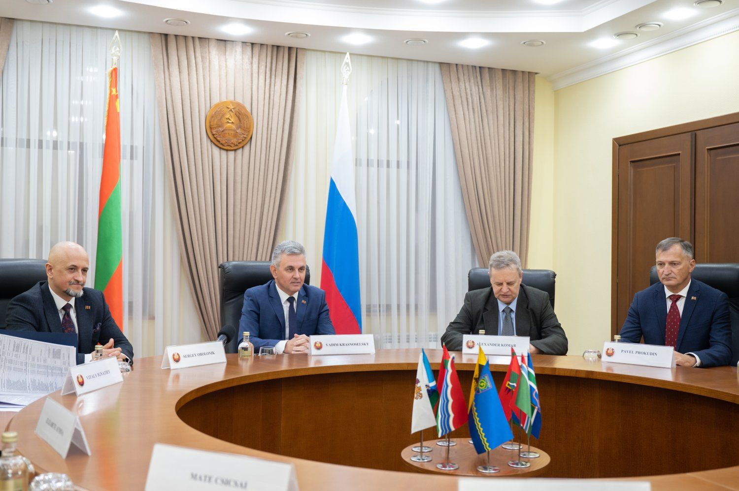 07 Apr., 2025, 15:09Meeting of the PMR President Vadim Krasnoselsky with the European delegation took in the negotiation hall of the presidential executive office. The group of visitors was headed by the Head of the Department of the European External Action Service for Georgia, Moldova, Armenia, Azerbaijan and Belarus Dorota Dlouchy-Suliga. She was accompanied by the Head of the EU Delegation to the Republic of Moldova Janis Mazeiks. The First Deputy Chairman of the Government – Minister of Economic Development Sergey Obolonik, the Foreign Minister Vitaly Ignatiev and the Advisor to the PMR President Pavel Prokudin participated in the working meeting from the Pridnestrovian side.