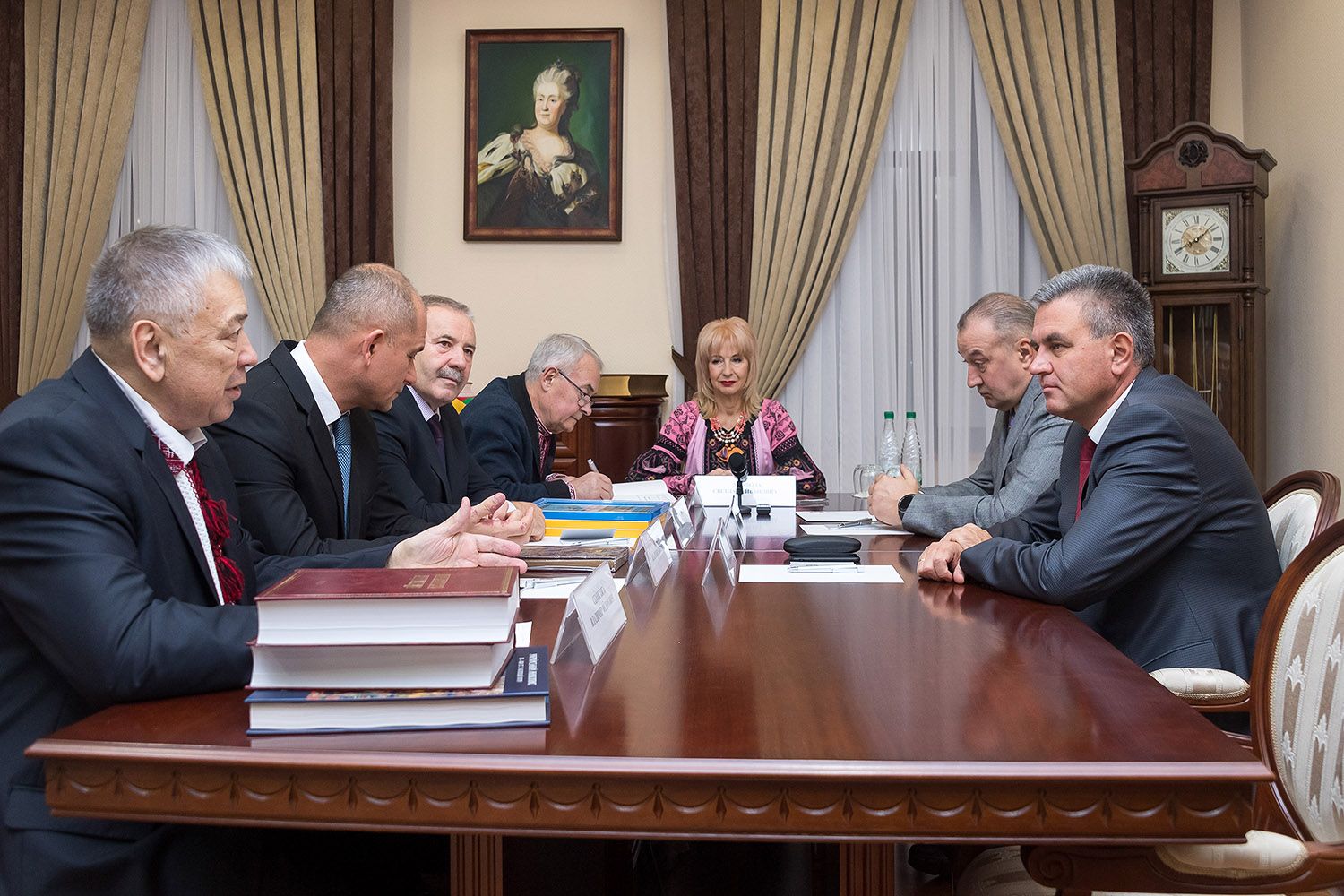 On the occasion of the event significant for the development of Ukrainian culture, a delegation from Ukraine arrived in Pridnestrovie. Its representatives were received by the PMR President. The meeting took place at the presidential executive office on the eve of the festival. Interlocutors Vadim Krasnoselsky - deputy director of the Institute of Literature of the National Academy of Sciences of Ukraine Sergey Galchenko, member of the board of the All-Ukrainian Union "Prosvita" Vladimir Semistyaga, head of the Ukrainian center "Sotrudnichestvo" Vladimir Fomenko and chairman of the jury of the upcoming festival, People's Artist of Ukraine Svetlana Mirvoda. The meeting was also attended by the Special Representative of the PMR President on cooperation with Ukraine Vladimir Smirnov and Chairman of the Union of Ukrainians of Pridnestrovie Petro Bogutsky.