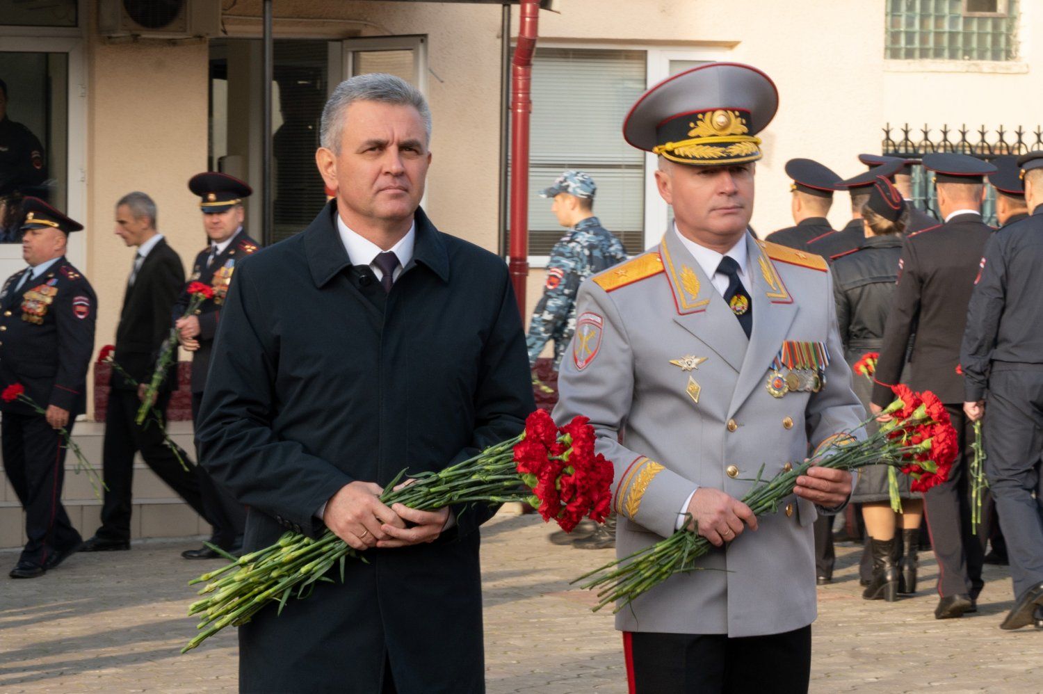 10 Nov., 2022, 10:33Triple professional holiday today for Pridnestrovian law enforcement officers: Militia Day, the 105th anniversary of the formation of the Soviet militia and the 31st anniversary of the creation of the Pridnestrovian militia. The President of the PMR congratulated the employees of the internal affairs bodies. Vadim Krasnoselsky arrived at the territory of the Ministry of Internal Affairs of the Pridnestrovian Moldavian Republic, where the personnel gathered on the solemn occasion. The festive events were preceded by the traditional flower-laying ceremony at the monument to employees of the internal affairs bodies of Pridnestrovie who died in the line of duty. More than four dozen militiamen gave their lives in the service for the Pridnestrovian history. 16 law enforcement officers died defending the freedom and independence of the Pridnestrovian state. Their memory was honored with a minute of silence during the solemn meeting that was held in the assembly hall of the Ministry of Internal Affairs. The history of the formation and development of law enforcement structures was recalled during the official part of the event. The countdown has been going on since 1917, when the people's militia initially and then the workers' militia appeared instead of the tsarist police. The corresponding decree was signed on 10 November.