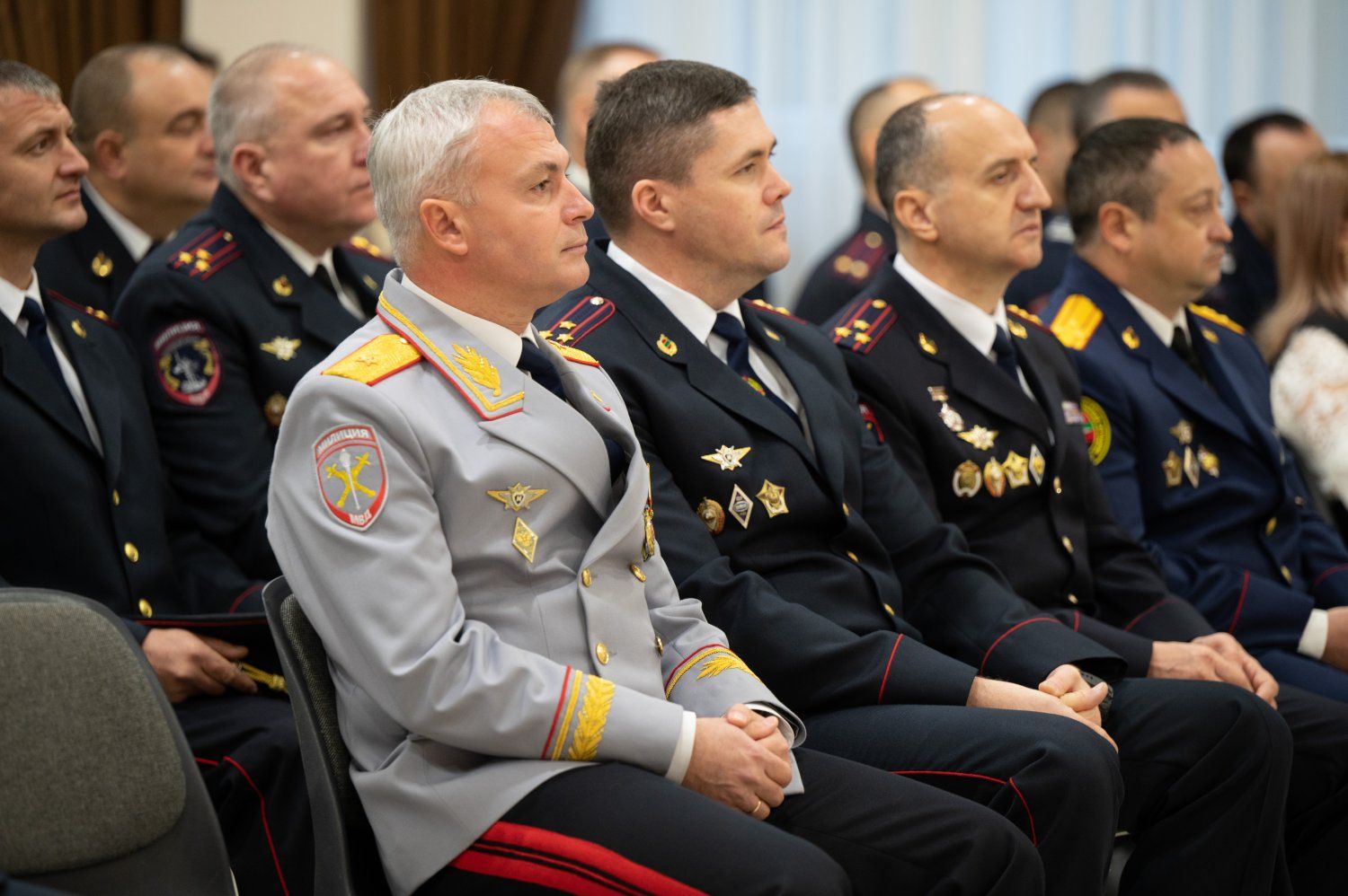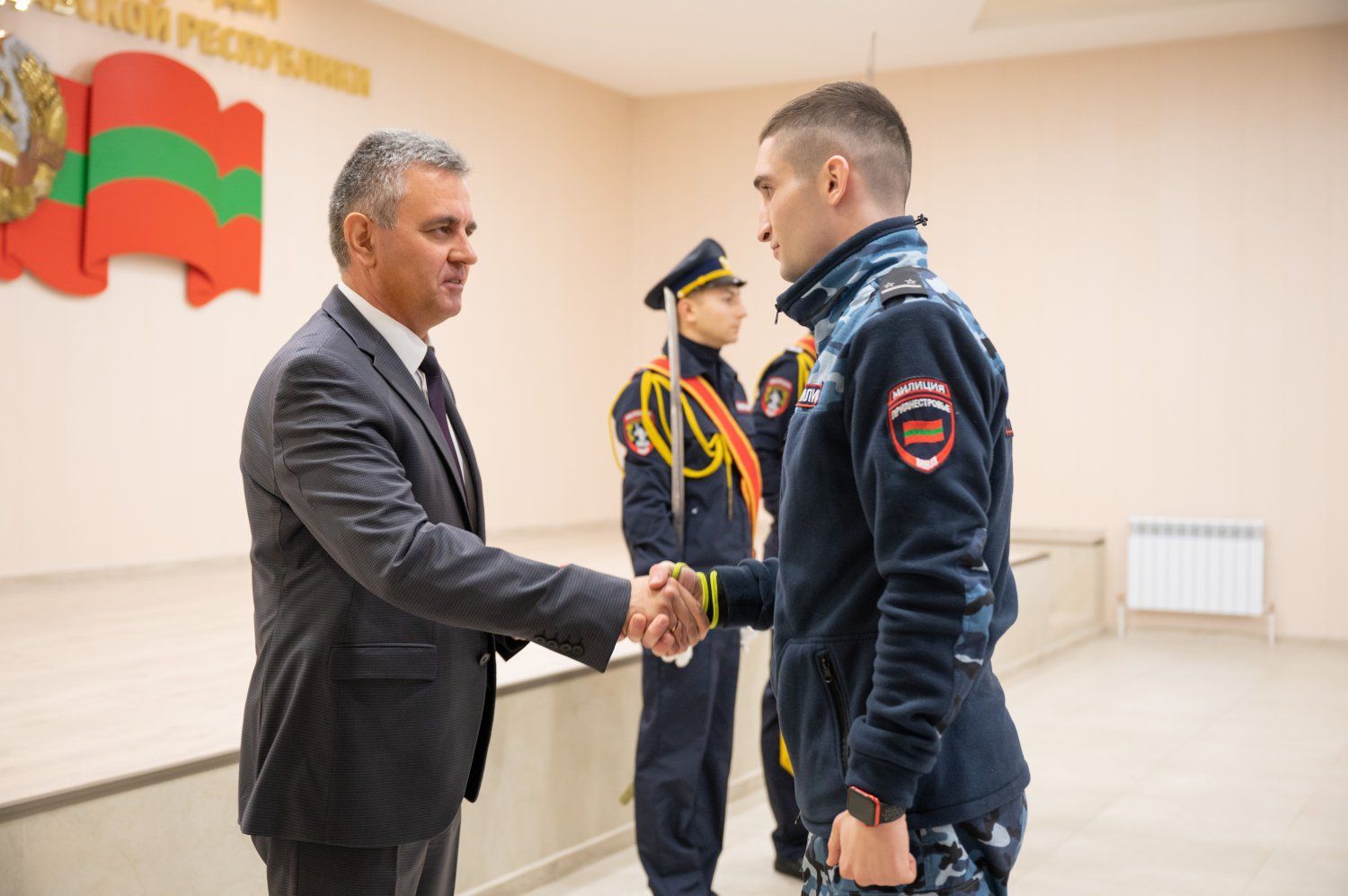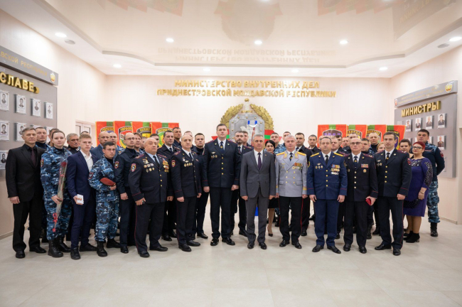 The PMR President presented state awards to the most distinguished employees of various departments of the Ministry of Internal Affairs of the Pridnestrovian Moldavian Republic. Sportsmen from among law enforcement officers were also awarded.