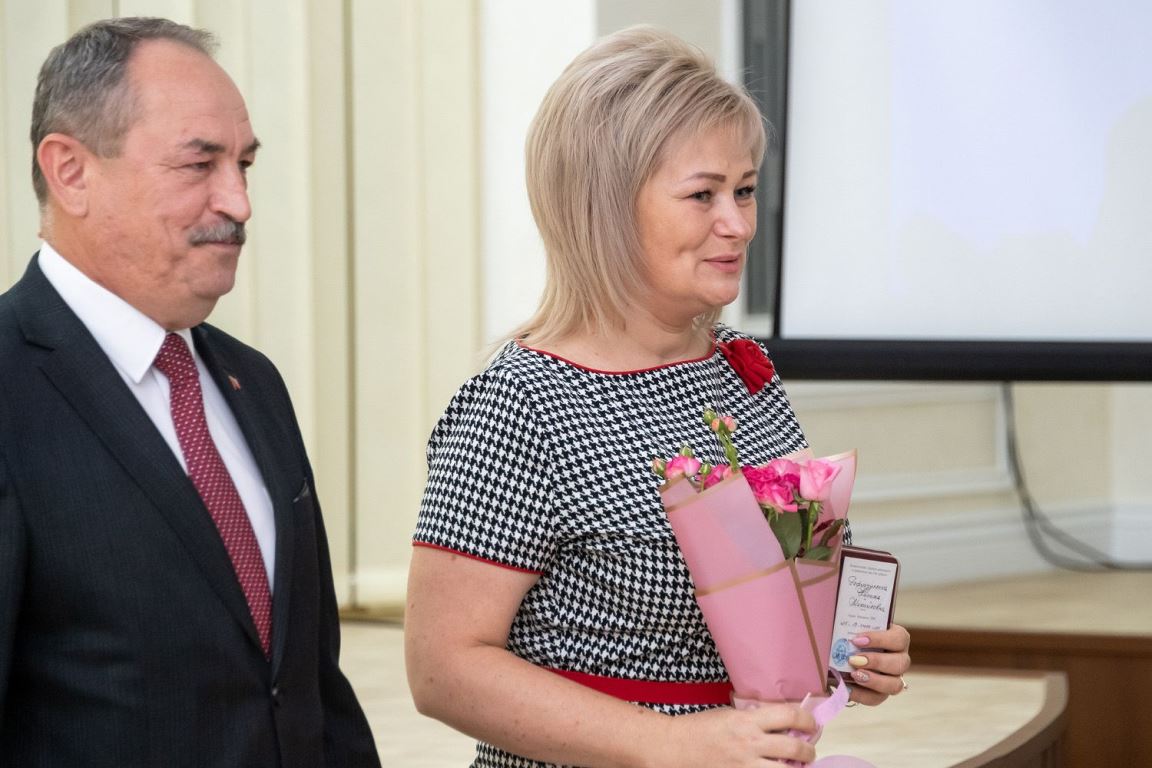 The Minister of Justice of the PMR Alexandra Tumba presented the President and other honorary guests of the festive event with the jubilee medals “30 years of Pridnestrovian justice”.