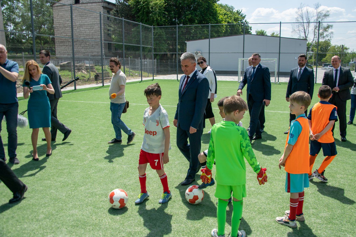 18 May., 2023, 15:42Bing on a working visit to Rybnitsa the President visited several city locations. He examined a new mini-football field on the territory of the Yubileiny sports complex, the reconstruction and development of which is under presidential control. There are trainings going on. Shots on goal were practiced by the young shift of the Rybnitsa football team Iskra at the time of the presidential visit. Vadim Krasnoselsky visited the gym and learned the opinion of coaches and athletes about the quality of the new tennis tables. They were manufactured on behalf of the President by the Ostrog State Unitary Enterprise, an enterprise that employs prisoners while serving their sentences. The first order included 53 tennis tables, was completed. Six of them were delivered to Rybnitsa. They will be installed in various districts of the city. Such tennis tables will appear in the future in educational institutions and parks of cities and villages of the republic. Sportsmen noted the good quality of the table coverings.