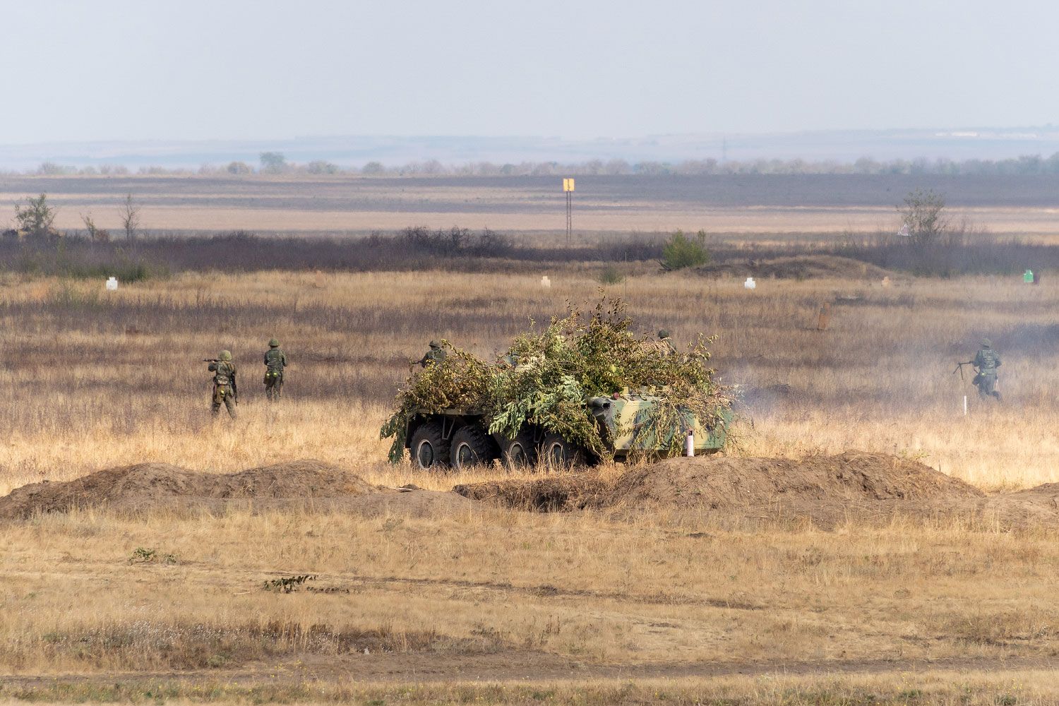 According to the plan of the exercises, a reinforced motorized rifle company, supported by artillery and air defense means, fought against border violators. Artillerymen, tankers, anti-aircraft gunners and motorized riflemen struck a mock enemy at various lines, thereby honing the coherence of actions in a changing tactical situation. The officers controlled the situation from the command-observation post. Since a motorized rifle company is a key tactical unit on the battlefield, the tactical actions of commanders and personnel, as well as the quality of hitting targets, were assessed.