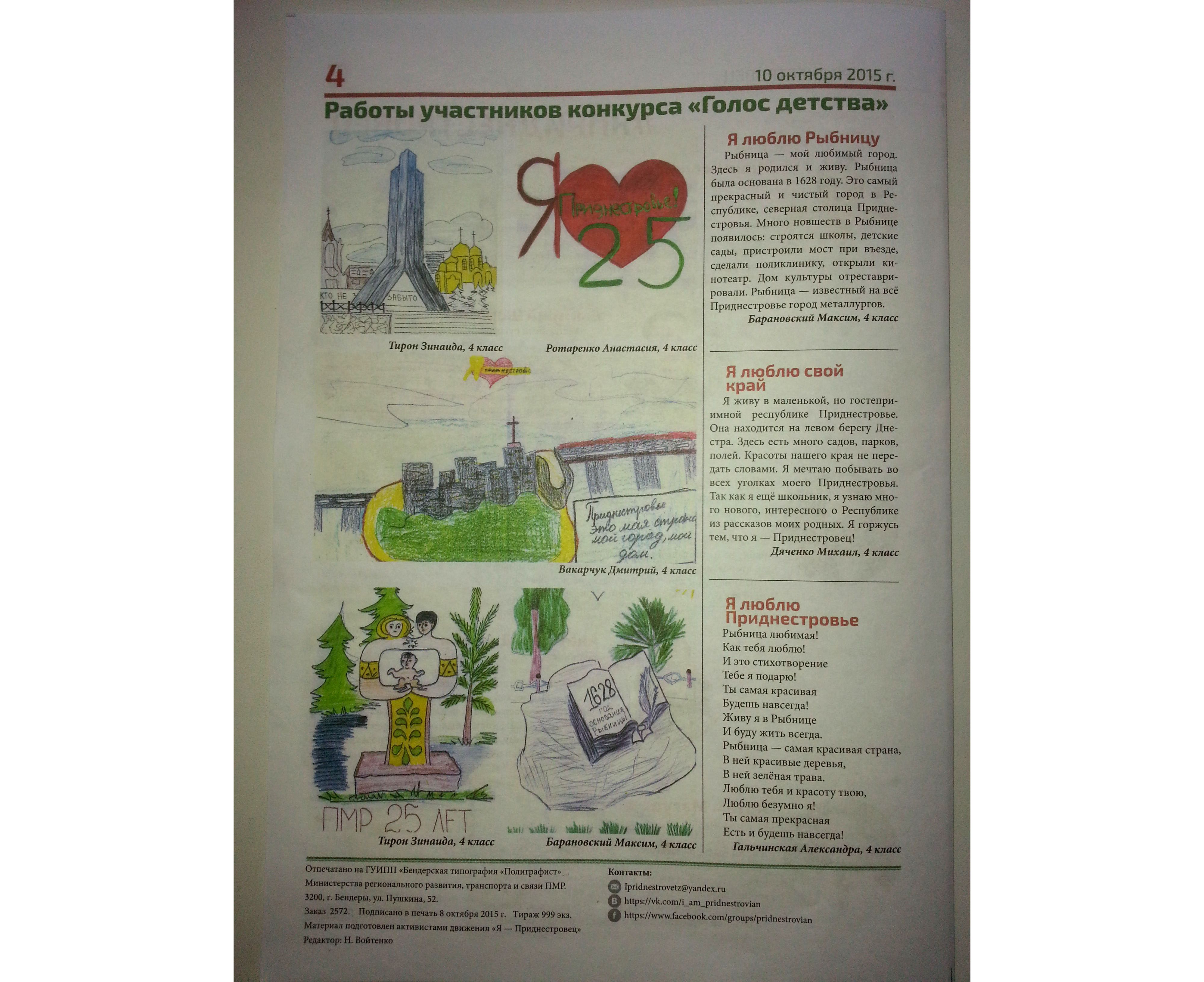 Выпуск газеты «Я – Приднестровец» от 10 окт 2015