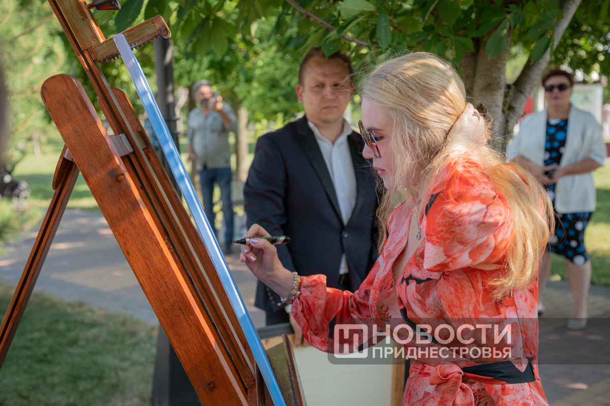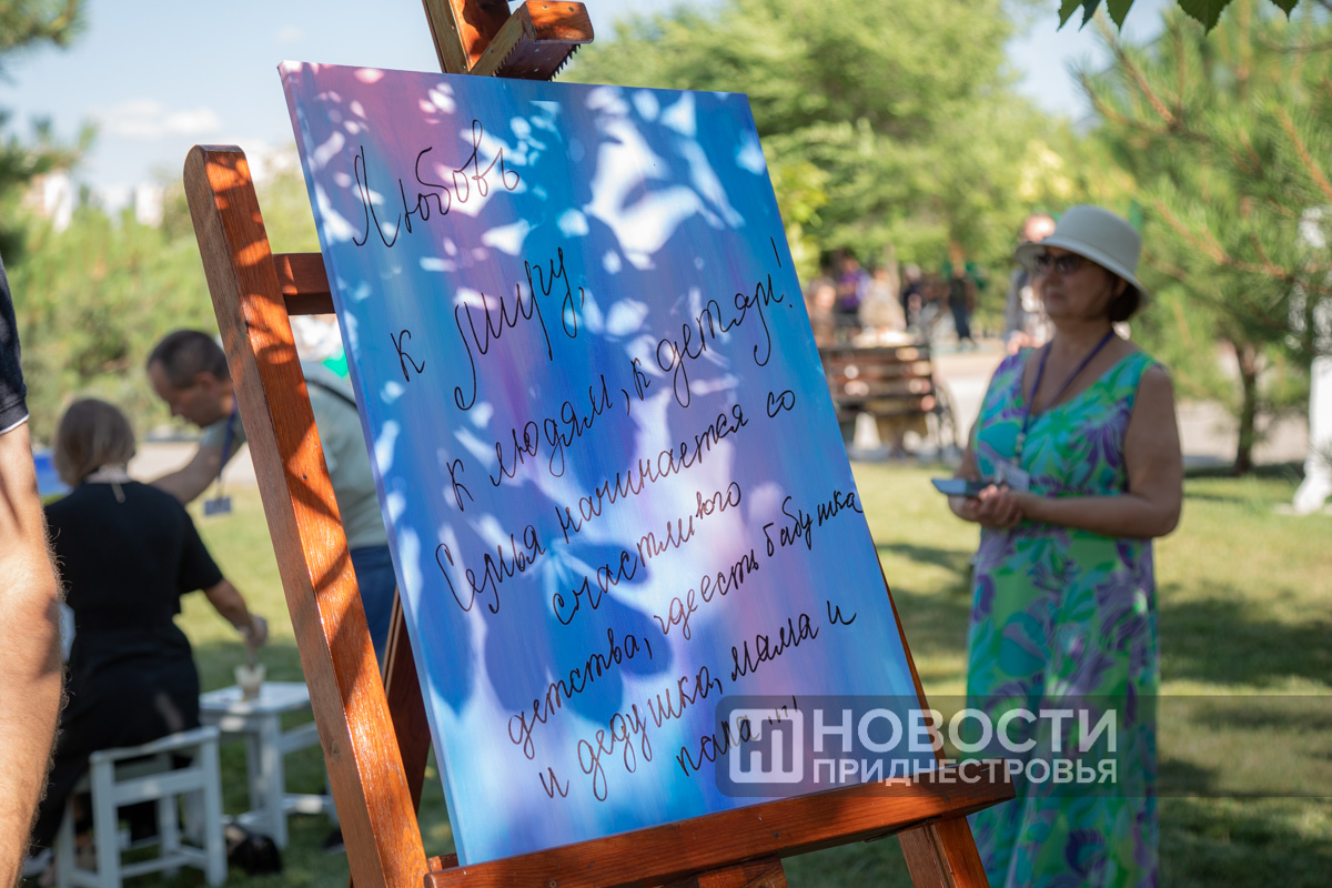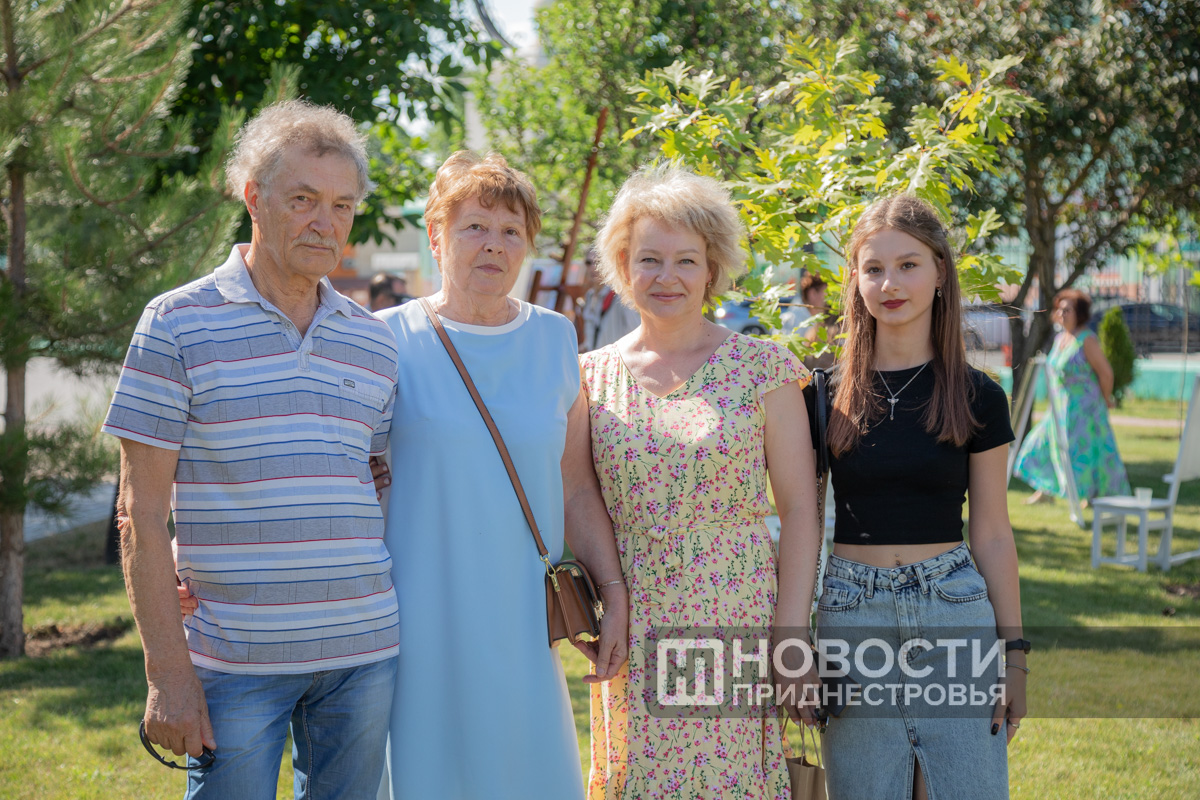 Pridnestrovians are preparing for the Day of Family, Love and Fidelity. A series of thematic events has started. The “Family is a magical symbol of life” family festival is taking place in the capital’s Catherine Park. Its program includes a ceremony honoring families with rich experience. This is a traditional event. The PMR President with his wife take part in it obligatory. The Krasnoselsky couple greeted the Korobkin family on the Alley of Fountains. The head of the family Denis Korobkin introduced to the guests of honor his wife – the namesake of the wife of the PMR President – Svetlana and their children – Maxim and Nika. The couples went to an exhibition of creativity of Pridnestrovian masters. Svetlana Krasnoselskaya wrote on one of the canvases that a family begins with a happy childhood, where there are grandparents, mother and father.