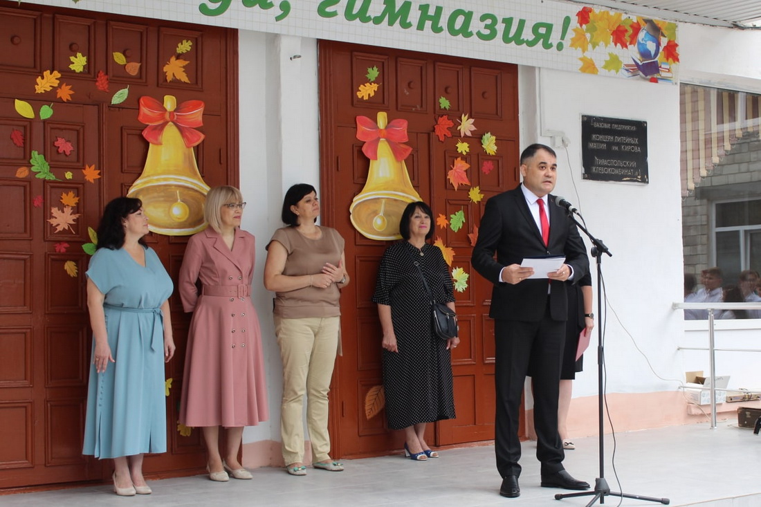 Глава Григориопольского района и города Григориополь Олег Габужа посетил торжественную линейку в Русско-молдавской общеобразовательной средней школе с. Красная Горка. После звонка учащиеся разошлись по кабинетам, где классные руководители провели классные часы.