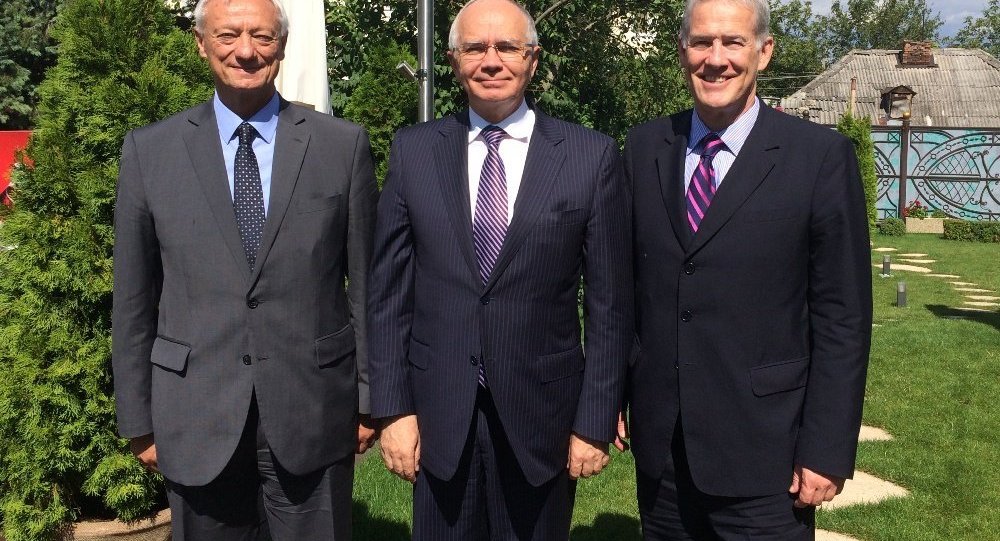 The Russian side is open to continue working with both sides and mediators of the «5+2» format negotiation process on improvement of dialogue between Kishinev and Tiraspol, the Russian Ambassador in Moldova Farit Mukhametshin declared at the meeting with the Special Representative of the OSCE Chairman-in-Office on Moldova-Pridnestrovie Reconciliation Radojko Bogojević and the head of the OSCE Mission in RM Michael Scanlan, the press service of the Russian Embassy in RM reports.
