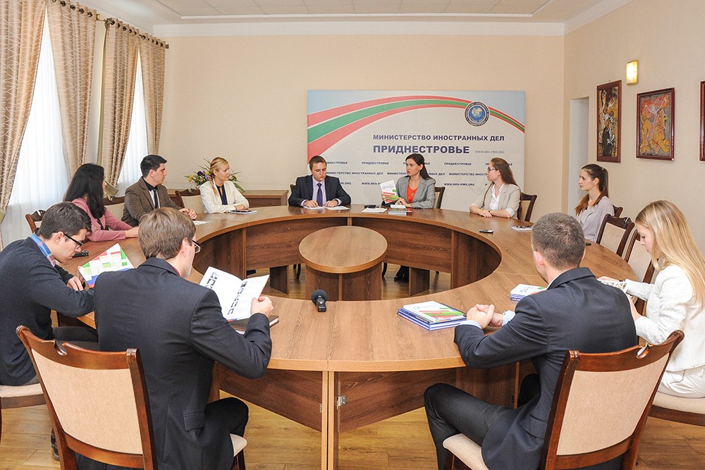 The first international school Geopolitics and Regional Security closes today The last event in the school's schedule was a meeting of school participants with representatives of the Council of Young Diplomats (CYD) attached to Pridnestrovie's MFA.
