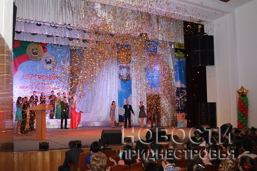 В этом году золотых медалей за отличные успехи в учении, труде и примерное поведение был удостоен 91 выпускник. 159 человек получили серебряные медали. По словам министра просвещения ПМР Светланы Фадеевой, процент медалистов к общему количеству выпускников сохраняется на уровне прошлого года – 9,3%.