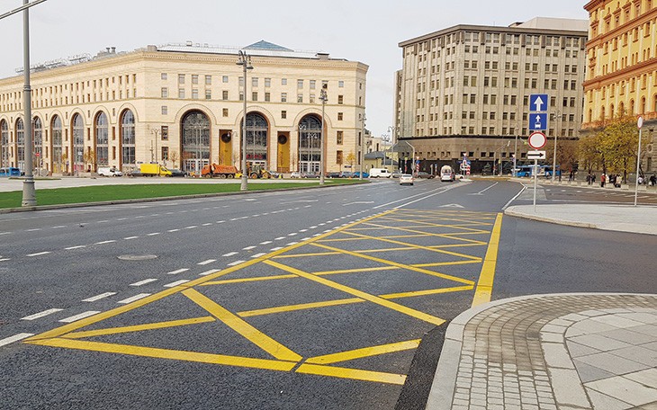 Зоны, где запрещён обгон, обозначат жёлтым, а полосы движения на перекрестках — синим