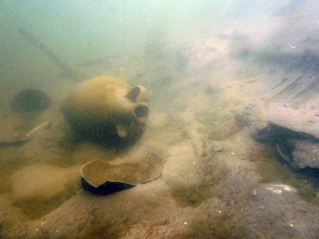 На борту судна найдены сотни амфор, многие из них целые — скорее всего, корабль перевозил масла и вина.