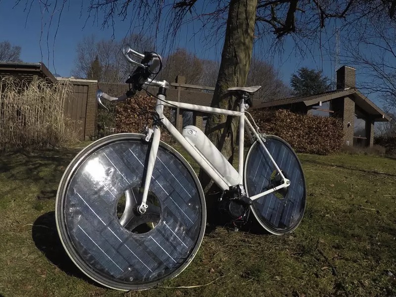 В столице Дании, Копенгагене, разработан велосипед, который питается от солнечных батарей, размещённых на колесах. Вырабатываемая солнечными батареями электроэнергия запасается в аккумуляторе и может использоваться для питания электродвигателя.