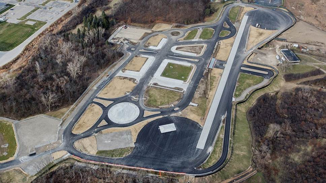 В так называемом городе «М» имеются обычные дороги, перекрестки, отрезки шоссе с круговым движением и тоннели. Предусмотрена даже грунтовая дорога. В городе есть фасады зданий, указатели с улицами и светофоры. Все это можно менять местами — в зависимости от того, какое именно испытание проводится.