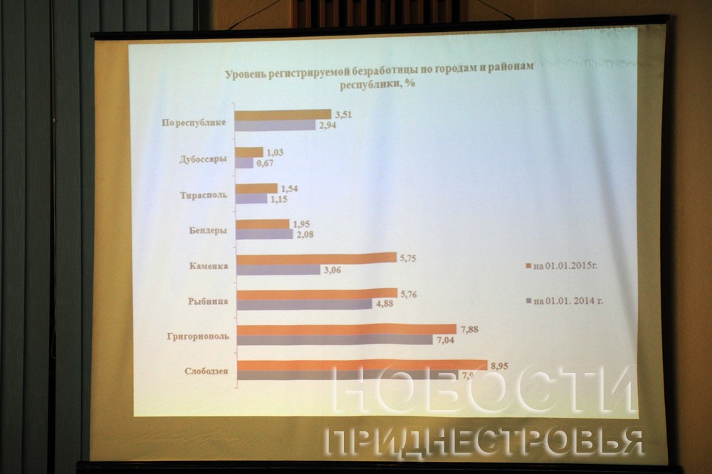 «Уровень безработицы в 2014 году увеличился не за счёт снижения численности занятого населения в экономике республики, а за счёт увеличения официально зарегистрированных в Центре социального страхования и социальной защиты безработных, которые ранее работали за пределами республики», - пояснила министр.